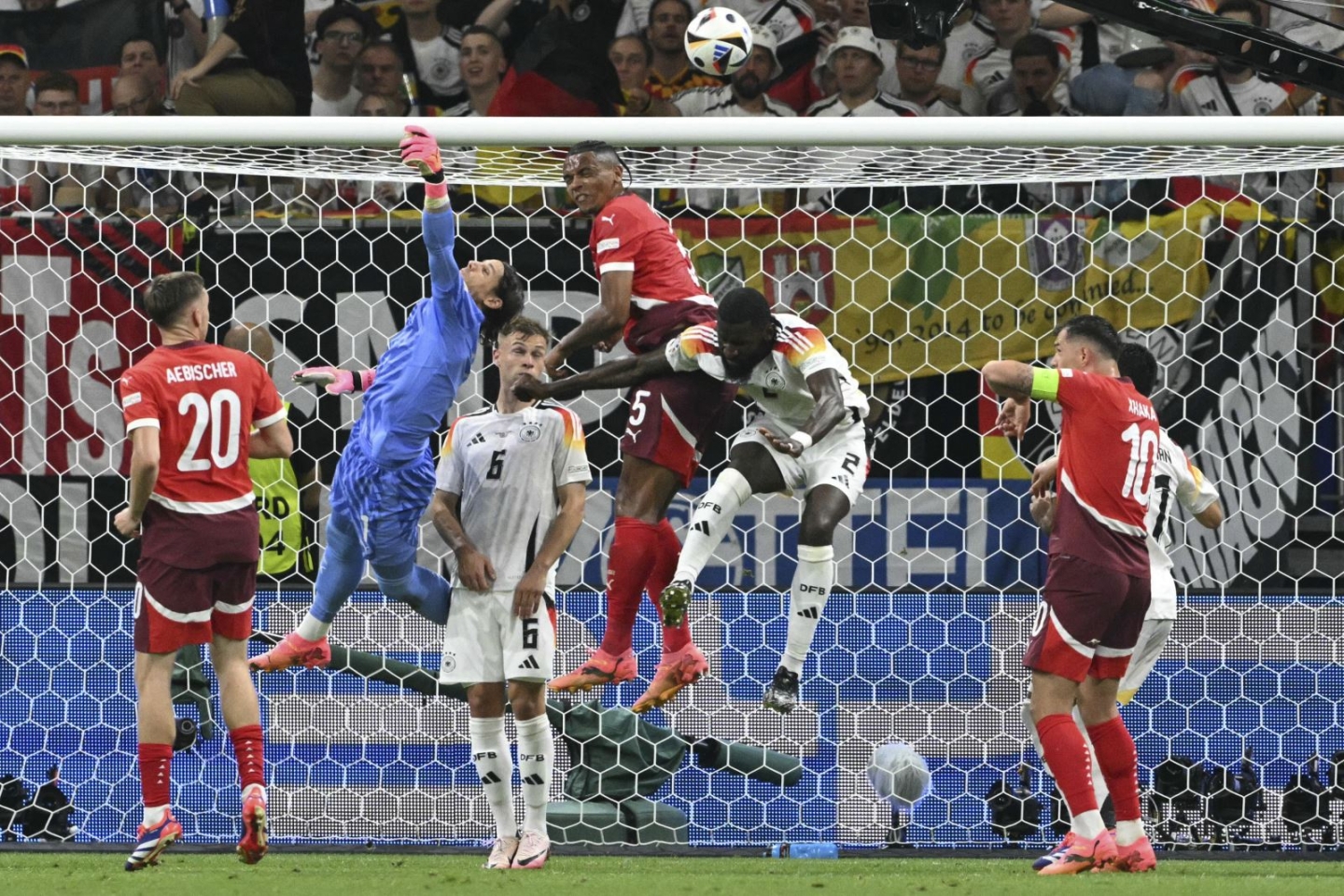 Pha tranh bóng giữa cầu thủ 2 đội Thụy Sĩ và Đức. Ảnh: AFP/TTXVNĐội tuyển Thụy Sĩ đã gây bất ngờ khi vươn lên dẫn trước nhờ pha lập công của Dan Ndoye ở phút 28. Sau đó, Đức gia tăng sức ép, liên tục tổ chức các pha tấn công, nhưng khung thành của thủ môn Yan Sommer vẫn đứng vững. Phải tới khi Đức có những thay đổi trên hàng công, cầu thủ mới vào sân là Fuellkrug đã có pha đánh đầu ở phút 92, san hòa 1-1. Đây cũng là tỷ số chung cuộc của trận đấu, đồng nghĩa với việc Đức đứng đầu bảng A với 7 điểm, còn Thụy Sĩ đứng thứ 2 với 5 điểm.