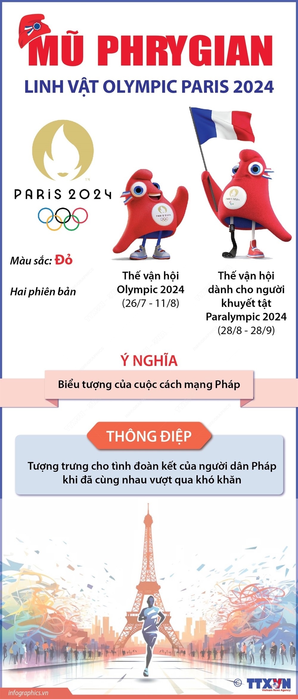 Linh vật của đại hội thể thao lớn nhất hành tinh này lấy cảm hứng từ chiếc mũ Phrygian - biểu tượng của cuộc cách mạng Pháp.