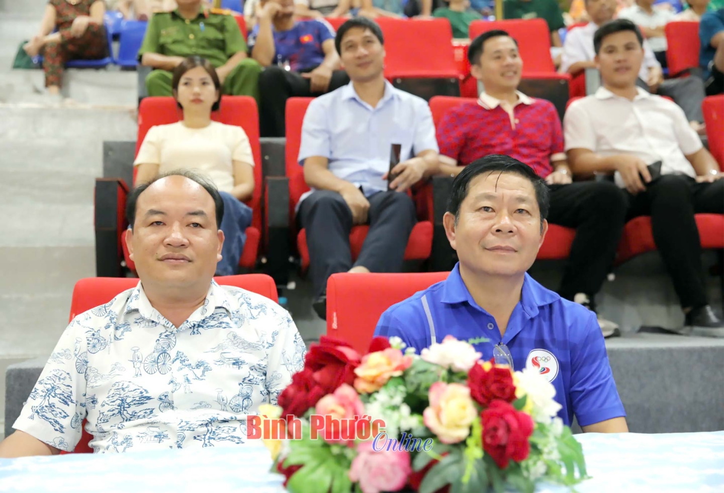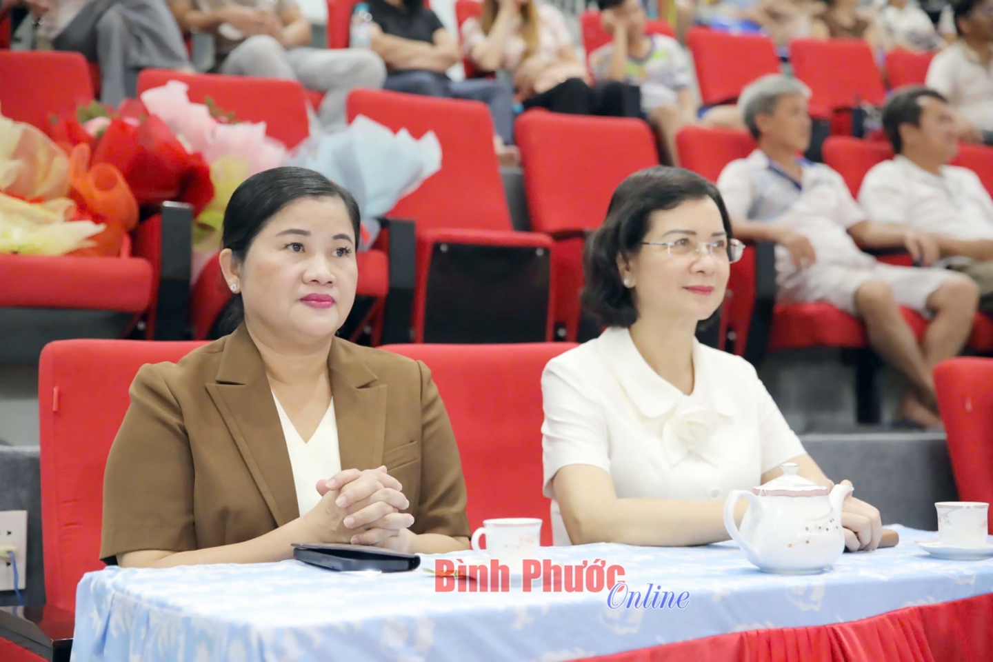 Phó Bí thư Tỉnh ủy, Chủ tịch UBND tỉnh Trần Tuệ Hiền; Ủy viên Ban thường vụ Tỉnh ủy, Phó Chủ tịch UBND tỉnh Trần Tuyết Minh dự khán trận đấu