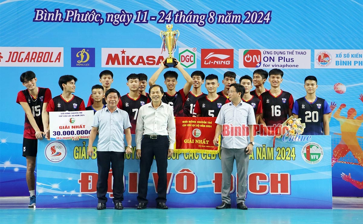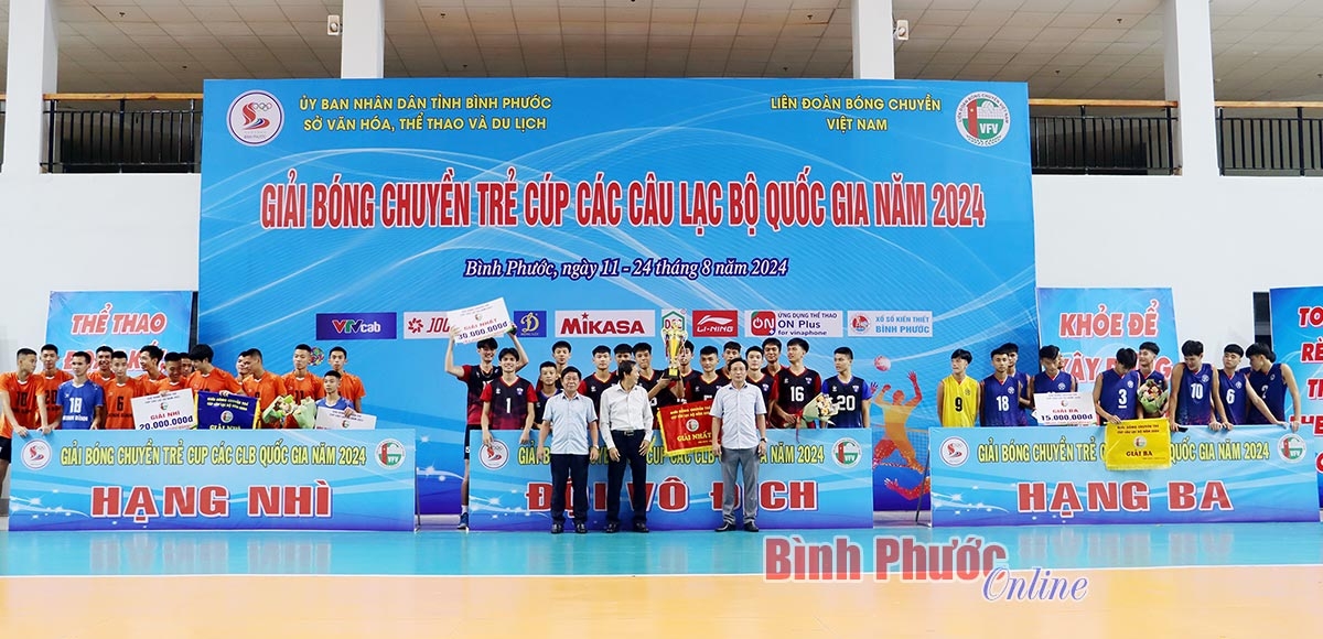 Thể Công Tân Cảng vô địch nội dung nam Giải bóng chuyền trẻ quốc gia năm 2024BPO - Tối 24-8, tại Nhà thi đấu đa năng tỉnh Bình Phước diễn ra trận đấu thứ 56, cũng là trận chung kết nội dung nam Giải bóng chuyền trẻ Cúp các câu lạc bộ (CLB) quốc gia năm 2024 giữa Thể Công Tân Cảng và Ninh Bình.