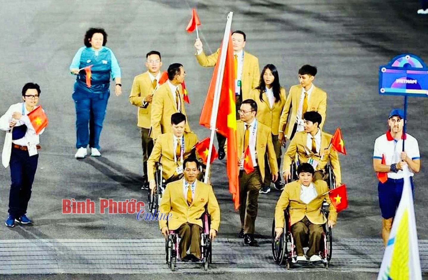 Đô cử Lê Văn Công vinh dự cầm cờ Tổ quốc trong lễ khai mạc Paralympic Paris 2024
