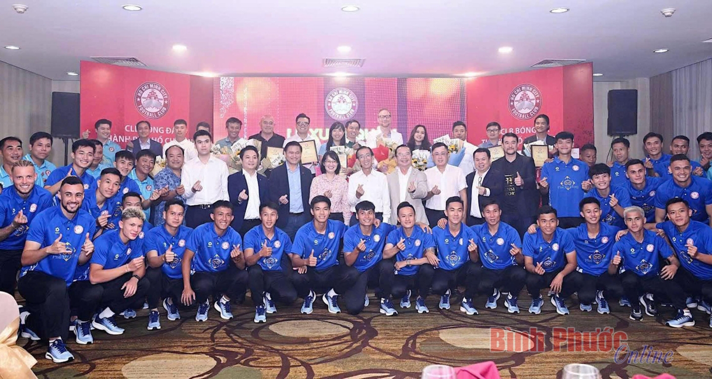 Tập thể CLB Bóng đá TP. Hồ Chí Minh chụp ảnh lưu niệm cùng các đại biểu