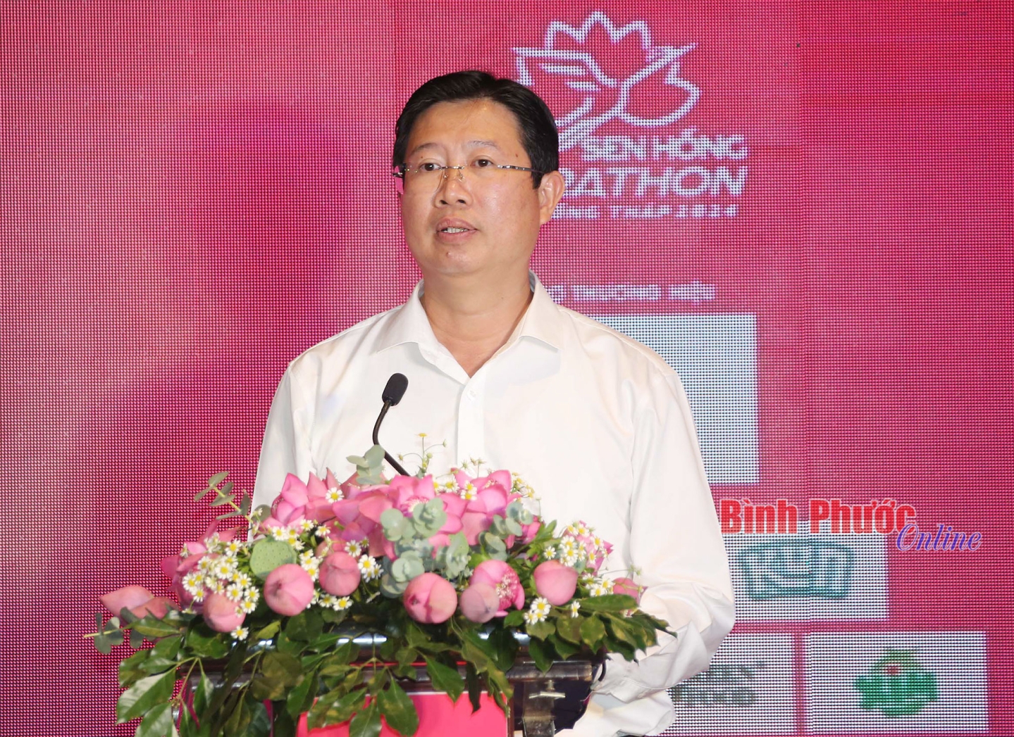 Ông Huỳnh Minh Tuấn, Phó Chủ tịch UBND tỉnh Đồng Tháp phát biểu trong buổi họp báo giải