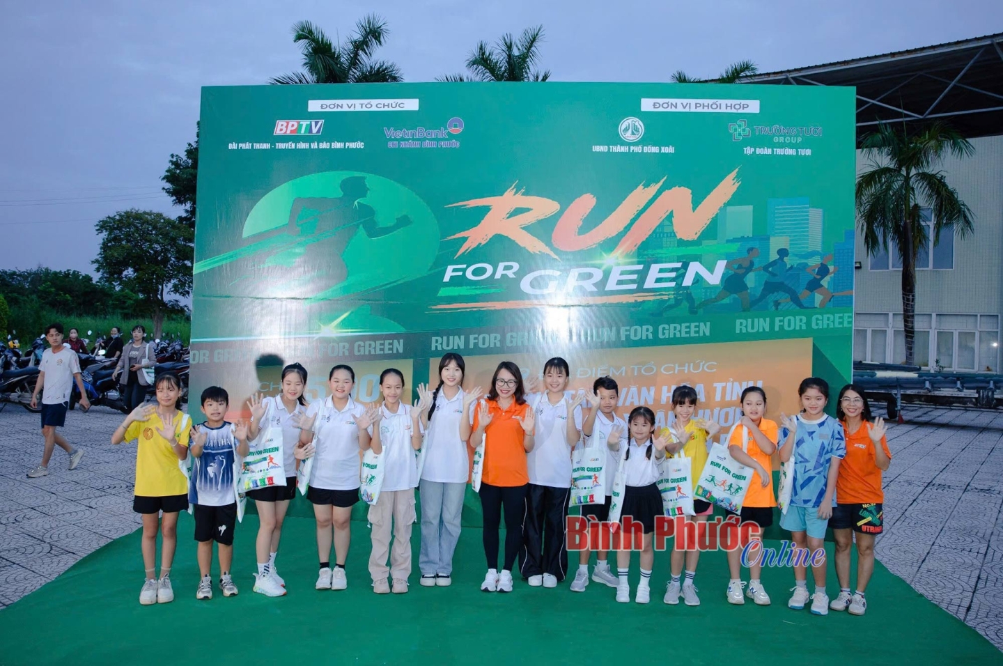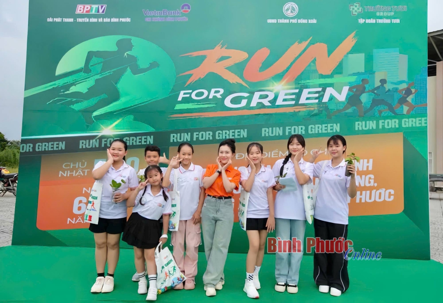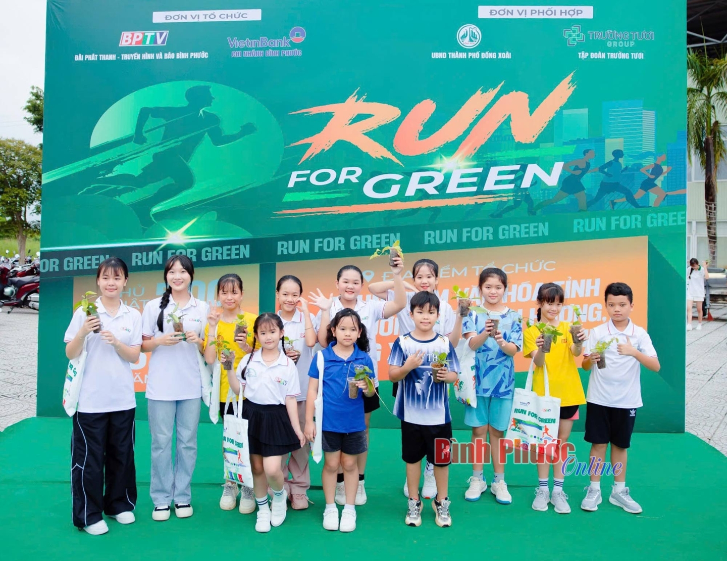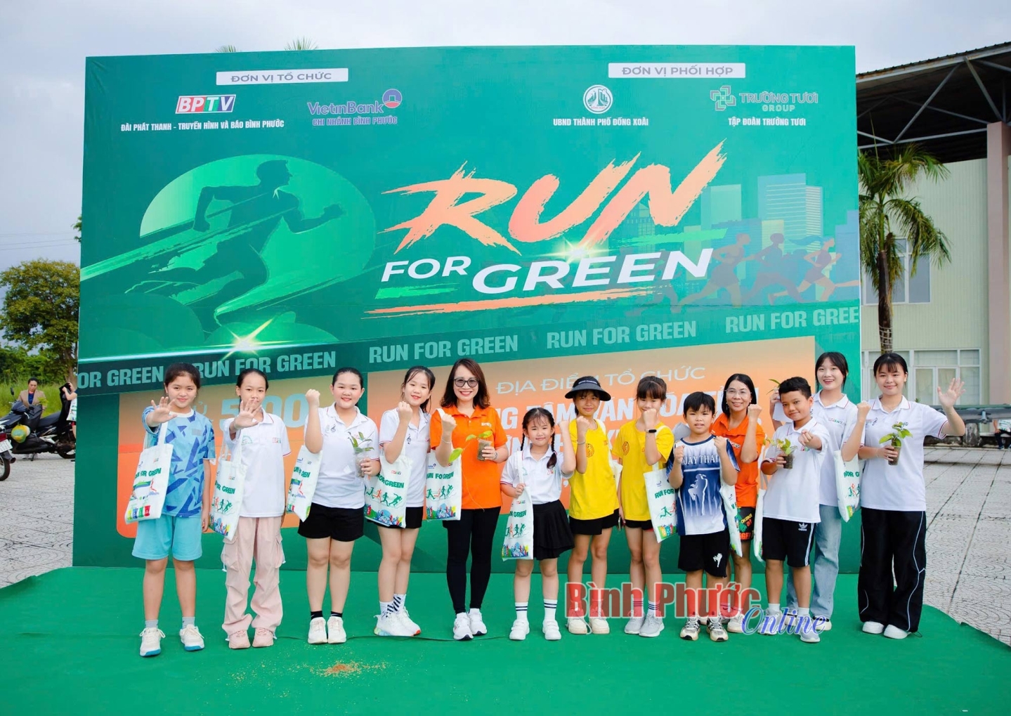 Khi cuộc chạy kết thúc, các bạn nhỏ tập kết rác tại điểm xuất phát. Hình ảnh các bạn cùng nhau cân rác với sự trợ giúp của Ban tổ chức thật đáng nhớ. Mỗi 1kg rác được quy đổi thành 1 cây xanh, được Đoàn khối Cơ quan và Doanh nghiệp tỉnh Bình Phước tài trợ.