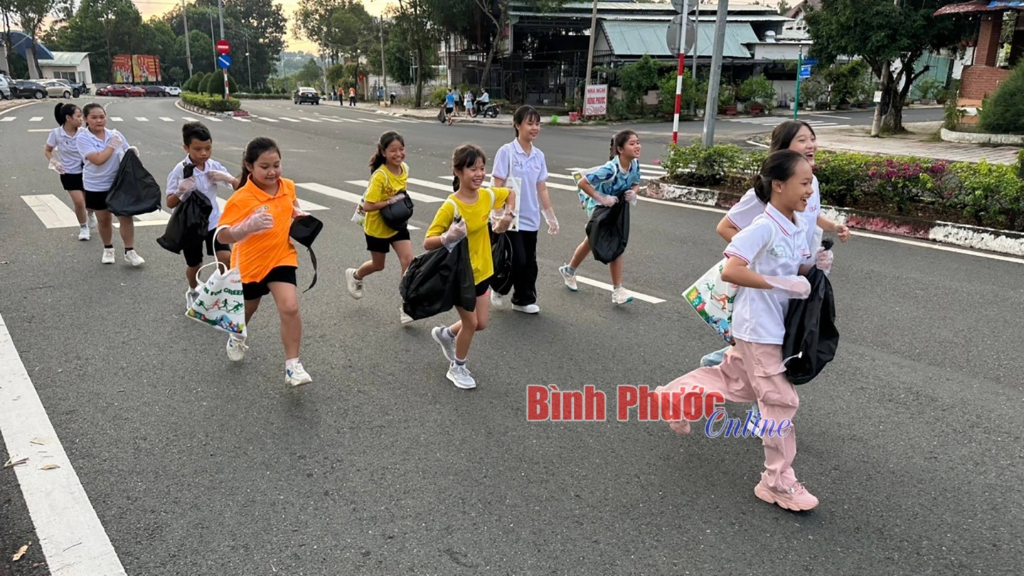 Không chỉ chạy bộ mà các bạn nhỏ còn nhặt rác, giúp cho môi trường trở nên sạch đẹp hơn