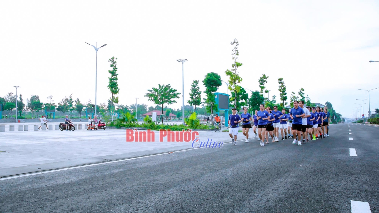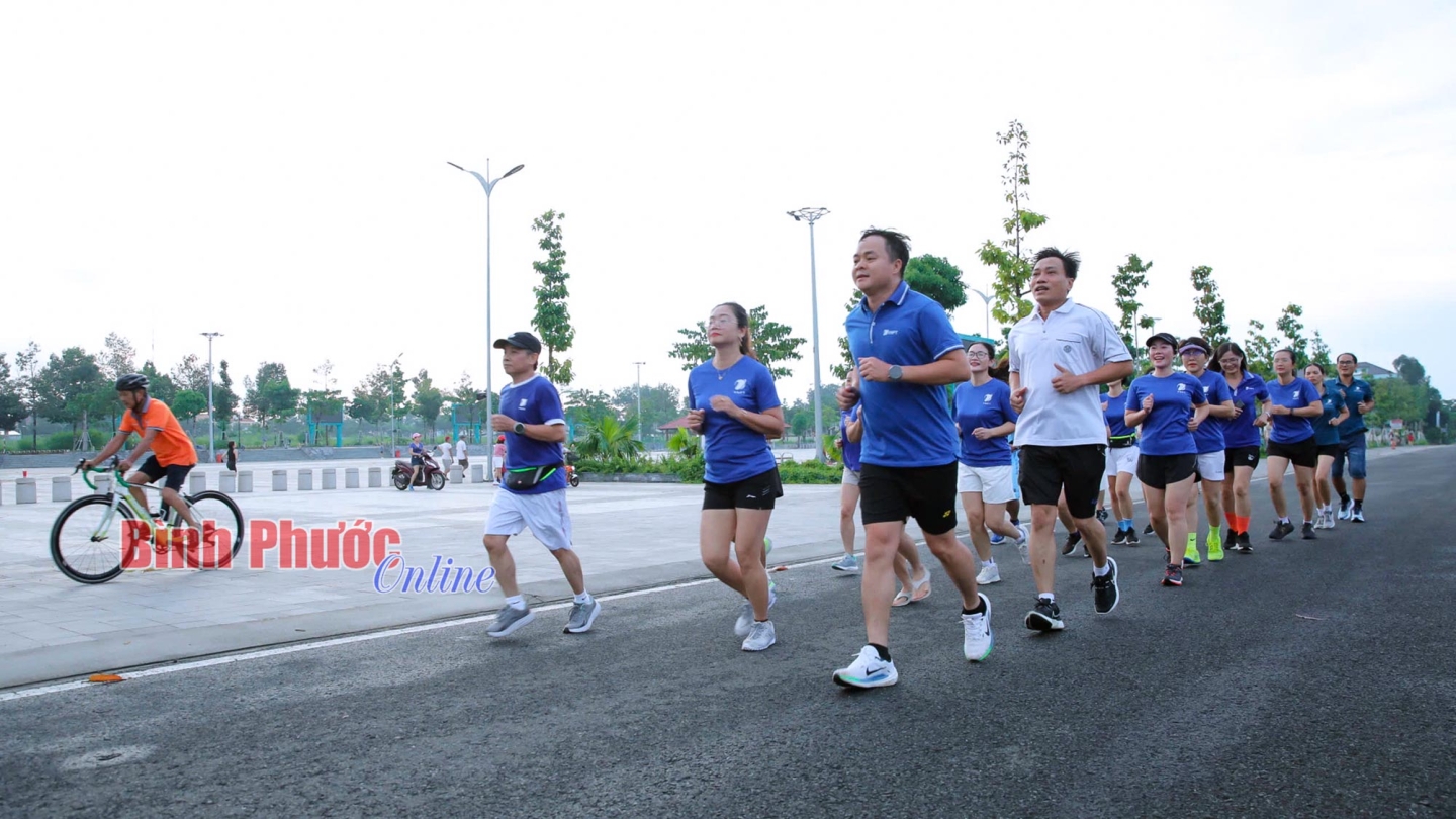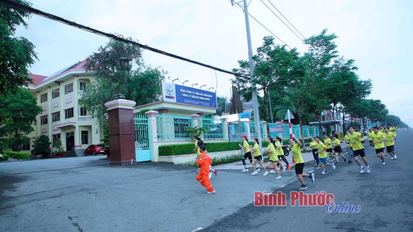 Công ty Điện lực Bình Phước nhân rộng việc chạy bộ như một hoạt động phong trào, không chỉ để anh chị em rèn luyện sức khỏe mà còn truyền đi những thông điệp ý nghĩa về môi trường làm việc đoàn kết của đơn vị - Ảnh: Trương Hiện
