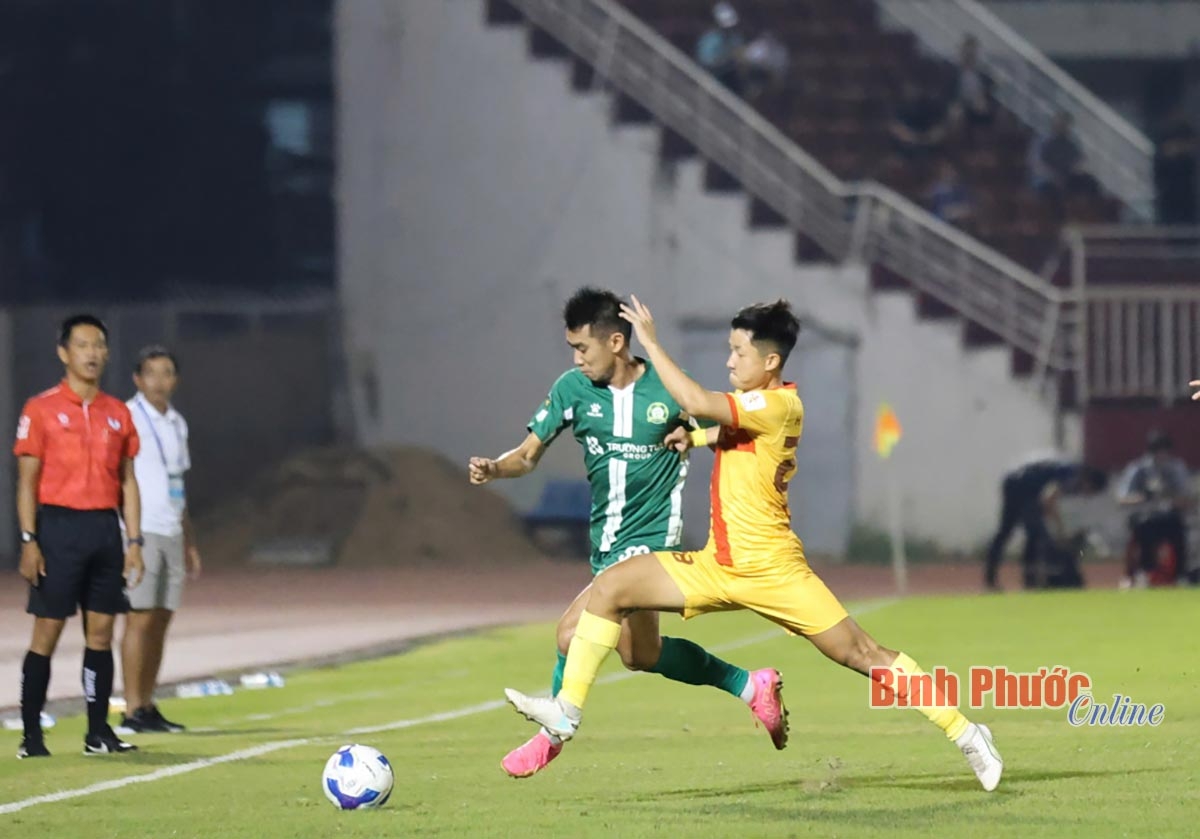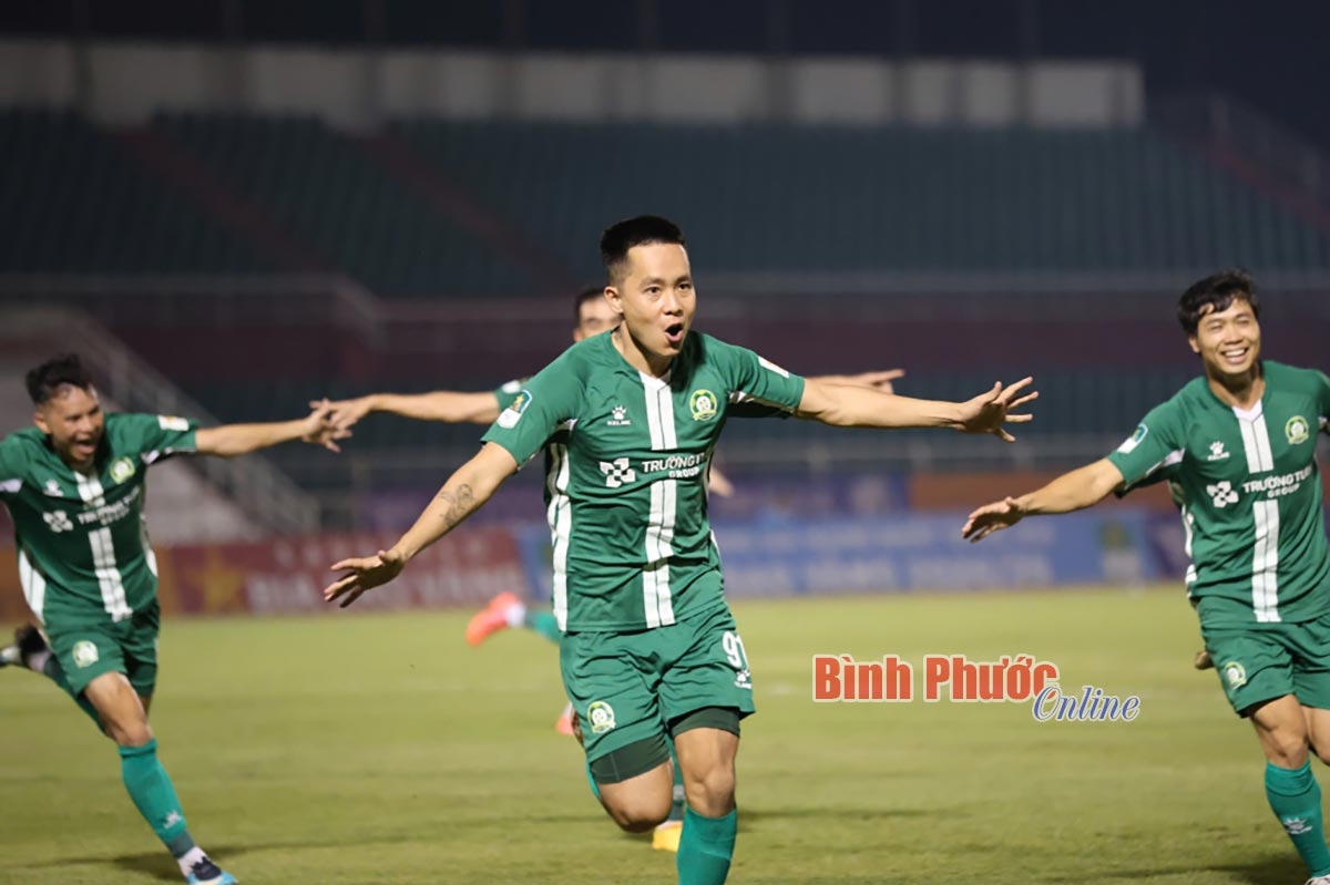 Sang hiệp 2 chỉ 2 phút, tiền đạo Lê Thanh Bình đã tận dụng tình huống lộn xộn trước khung thành đối phương đánh đầu mở tỷ số cho đội khách Bình Phước khai thông bế tắc. Trên đà hưng phấn, sau bàn mở tỷ số, các cầu thủ Trường Tươi Bình Phước tiếp tục dâng cao đội hình dồn ép đối thủ tạo ra được khá nhiều cơ hội nguy hiểm.