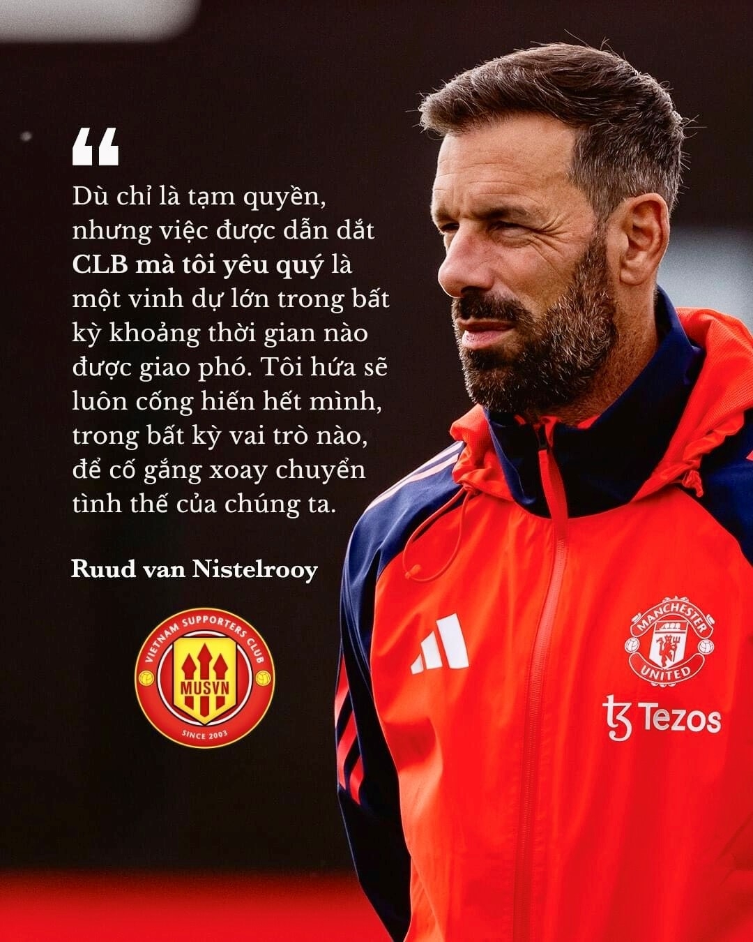 Trong quãng thời gian ngắn ngủi làm việc cho MU với tư cách HLV tạm quyền, Van Nistelrooy đã để lại ấn tượng đẹp. Bằng chứng là kể từ khi tiếp quản vị trí của người tiền nhiệm Erik Ten Hag bị sa thải, cựu tiền đạo MU đã giúp Quỷ đỏ bất bại 3 trận liền, trong đó có 2 chiến thắng đều với tỷ số cách biệt. Man Utd chỉ phải chịu cầm hòa trước đội bóng hùng mạnh nhất nước Anh là Chelsea.