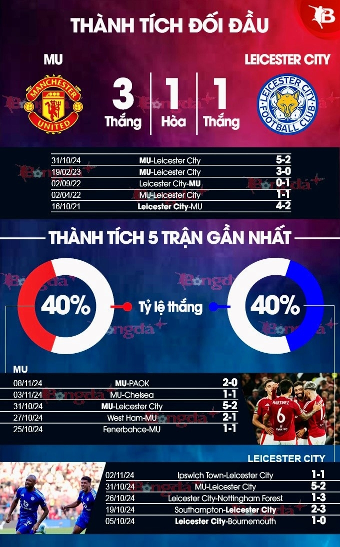 Lịch sử đã chứng minh bầy cáo Leicester vẫn là đối thủ rất ưa thích của Quỷ đỏ MU. Điều đó cho chúng ta thêm niềm tin về một trận thắng đẹp cho người tạm quyền Van Nistelrooy.