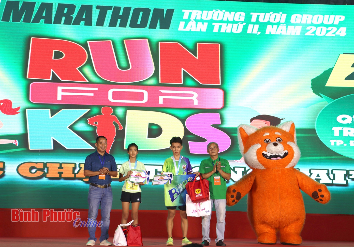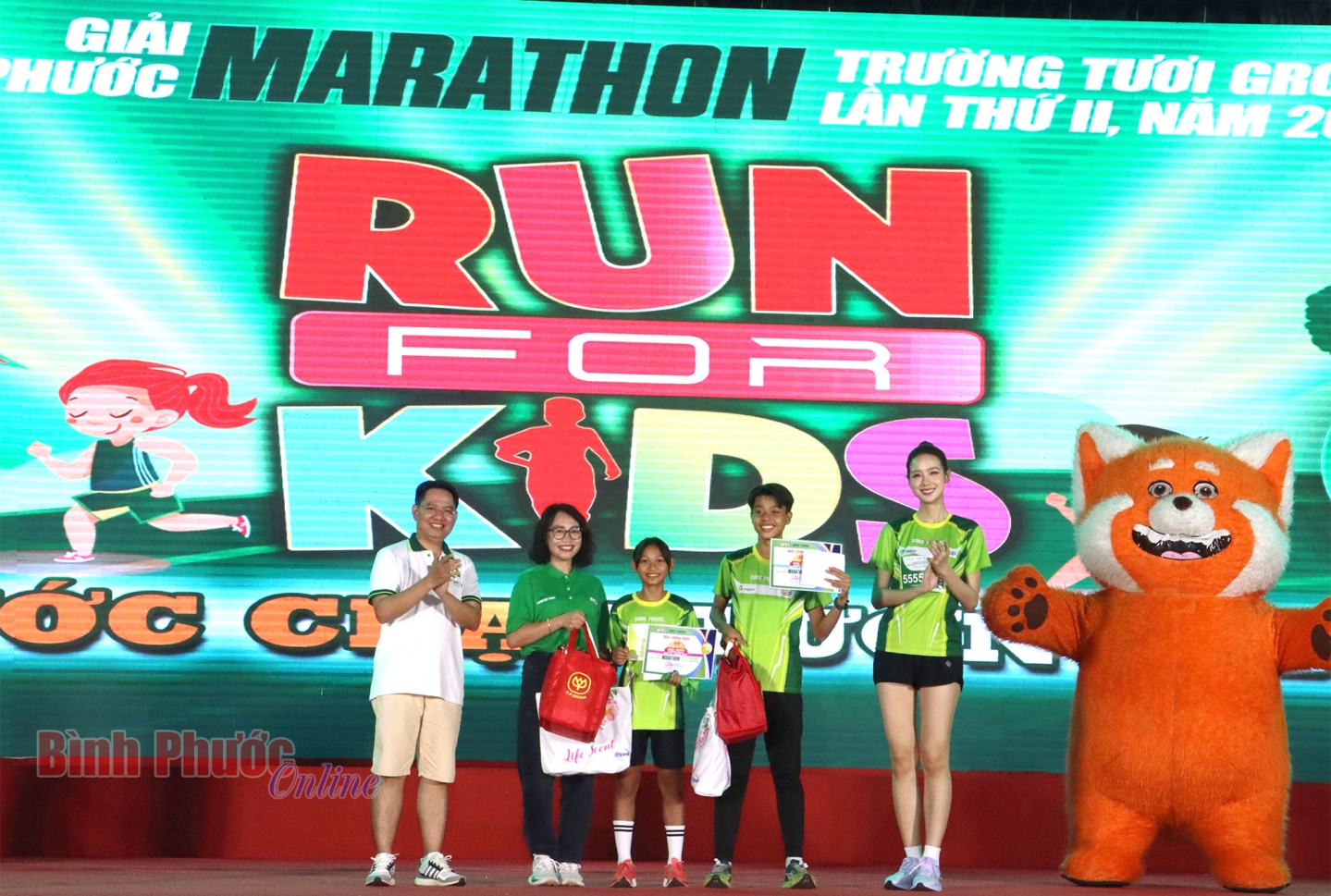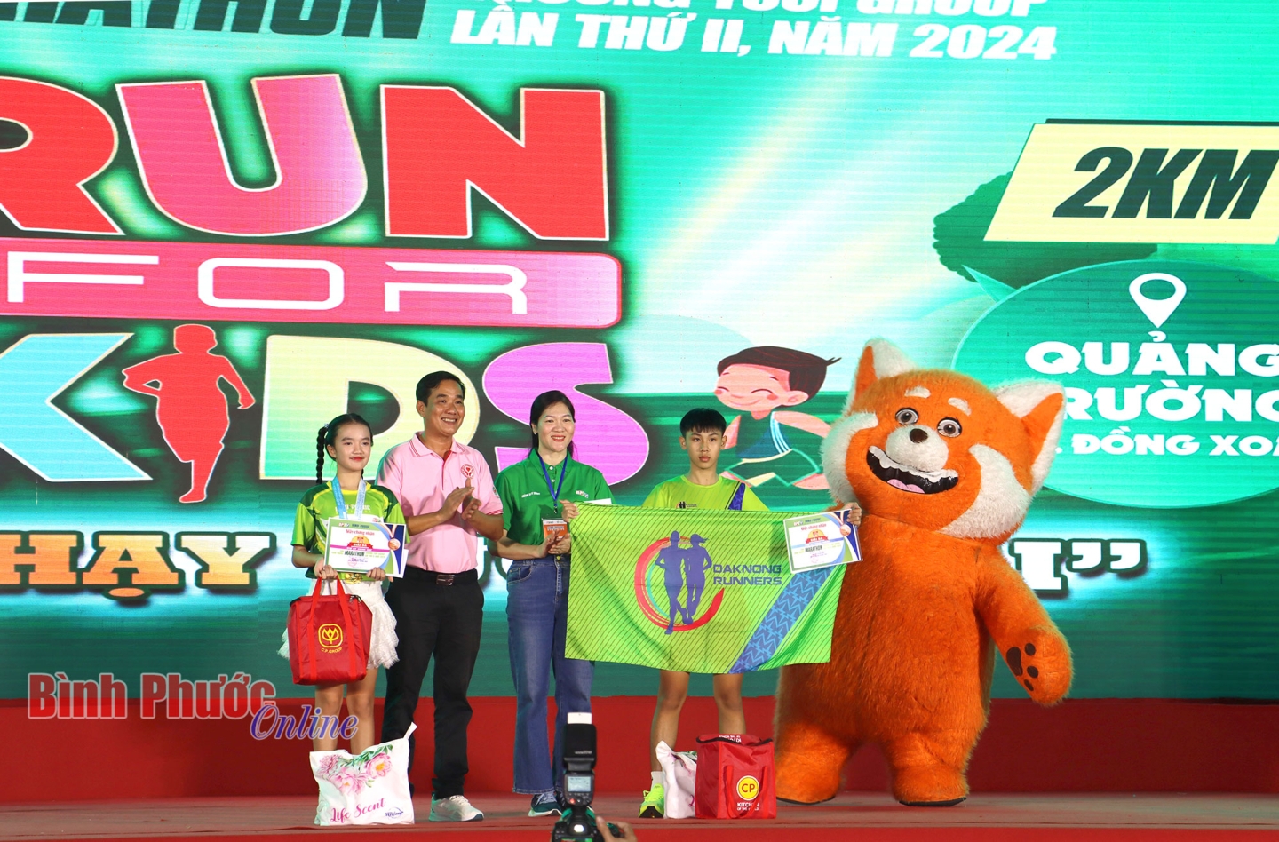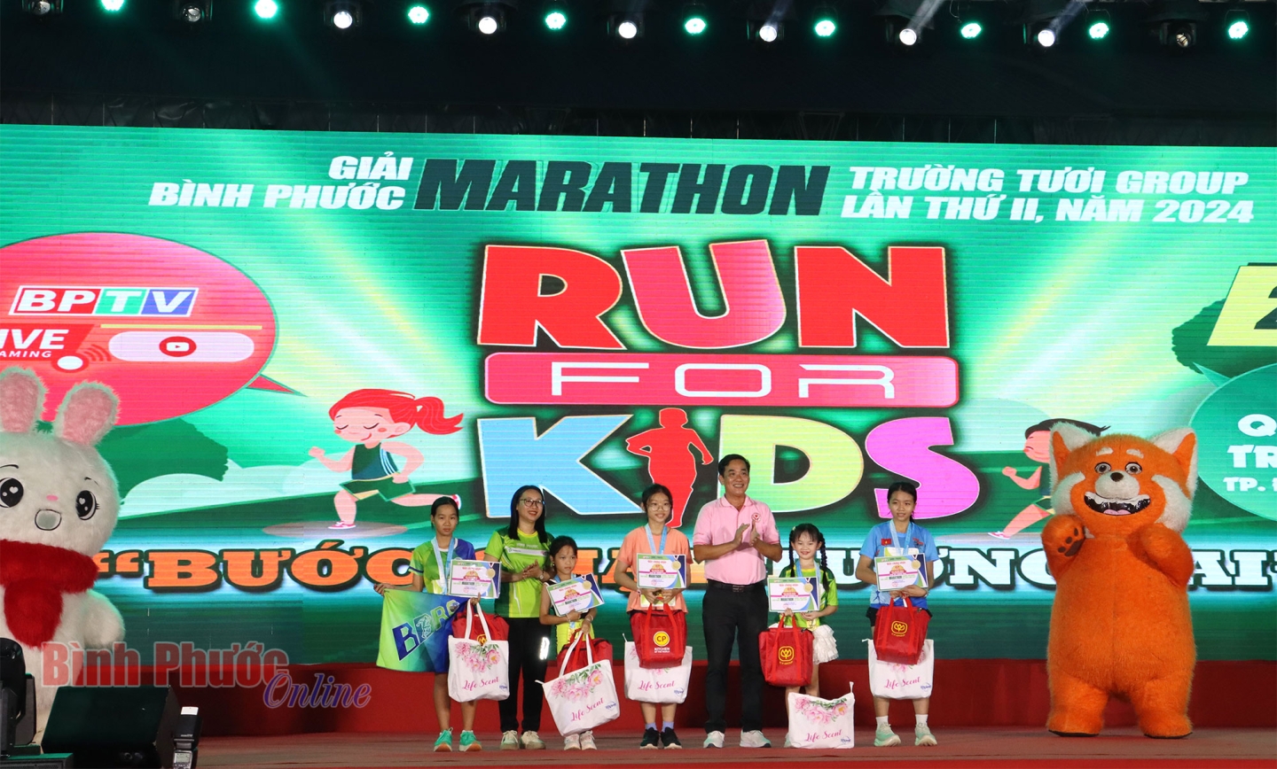 Phát biểu tại lễ trao giải, Trưởng Ban tổ chức giải Nguyễn Thị Minh Nhâm cho biết: Tuy đường đua chỉ 2km, nhưng RUN FOR KIDS là một hành trình ý nghĩa, đem đến cho các bạn nhỏ niềm vui thể thao, những trải nghiệm mới lạ trên cung đường chạy của thành phố Đồng Xoài tươi đẹp. Qua đó, Ban tổ chức đã tìm ra các vận động viên xuất sắc nhất để trao các giải thưởng của cuộc thi.