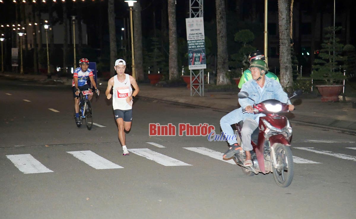 Nối tiếp sự thành công của nội dung RUN FOR KIDS diễn ra chiều 23-11, 3 giờ 30 phút sáng 24-11, các vận động viên (VĐV) bước vào cự ly thi đấu 42km với đường đua vòng quanh nội ô thành phố Đồng Xoài.