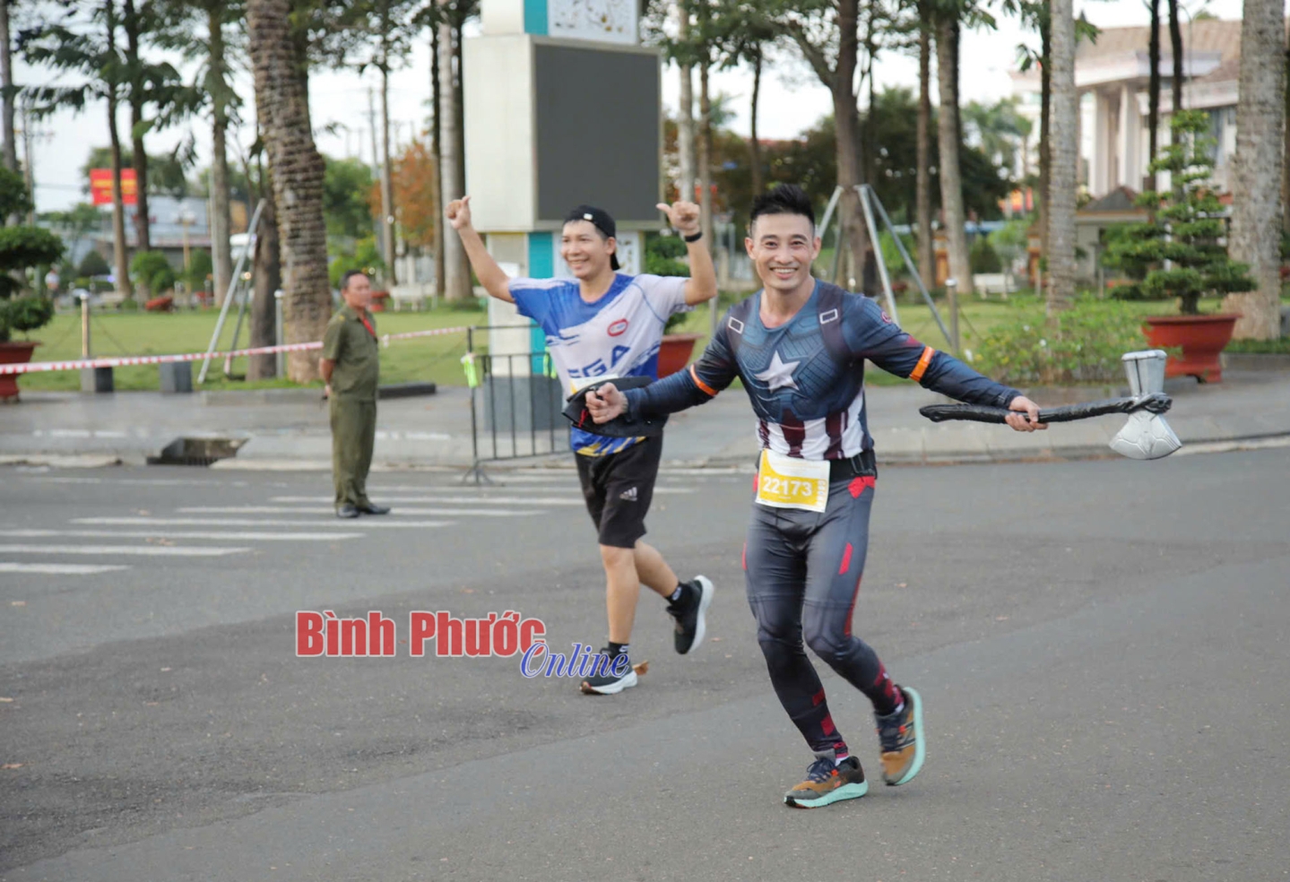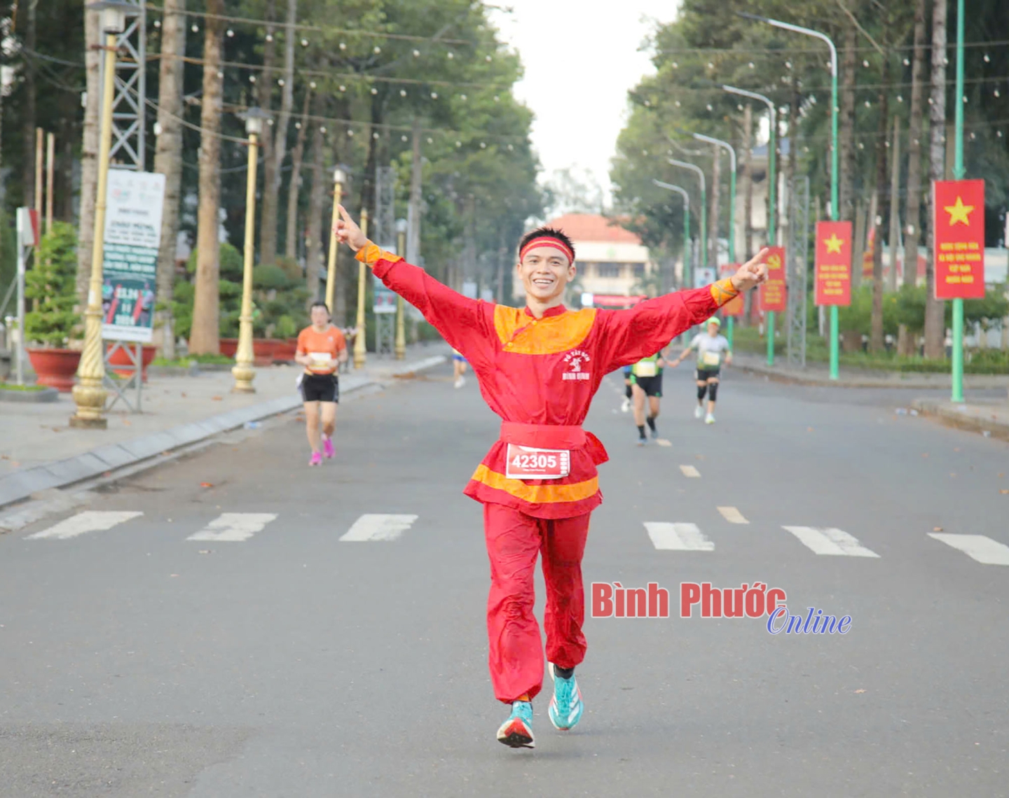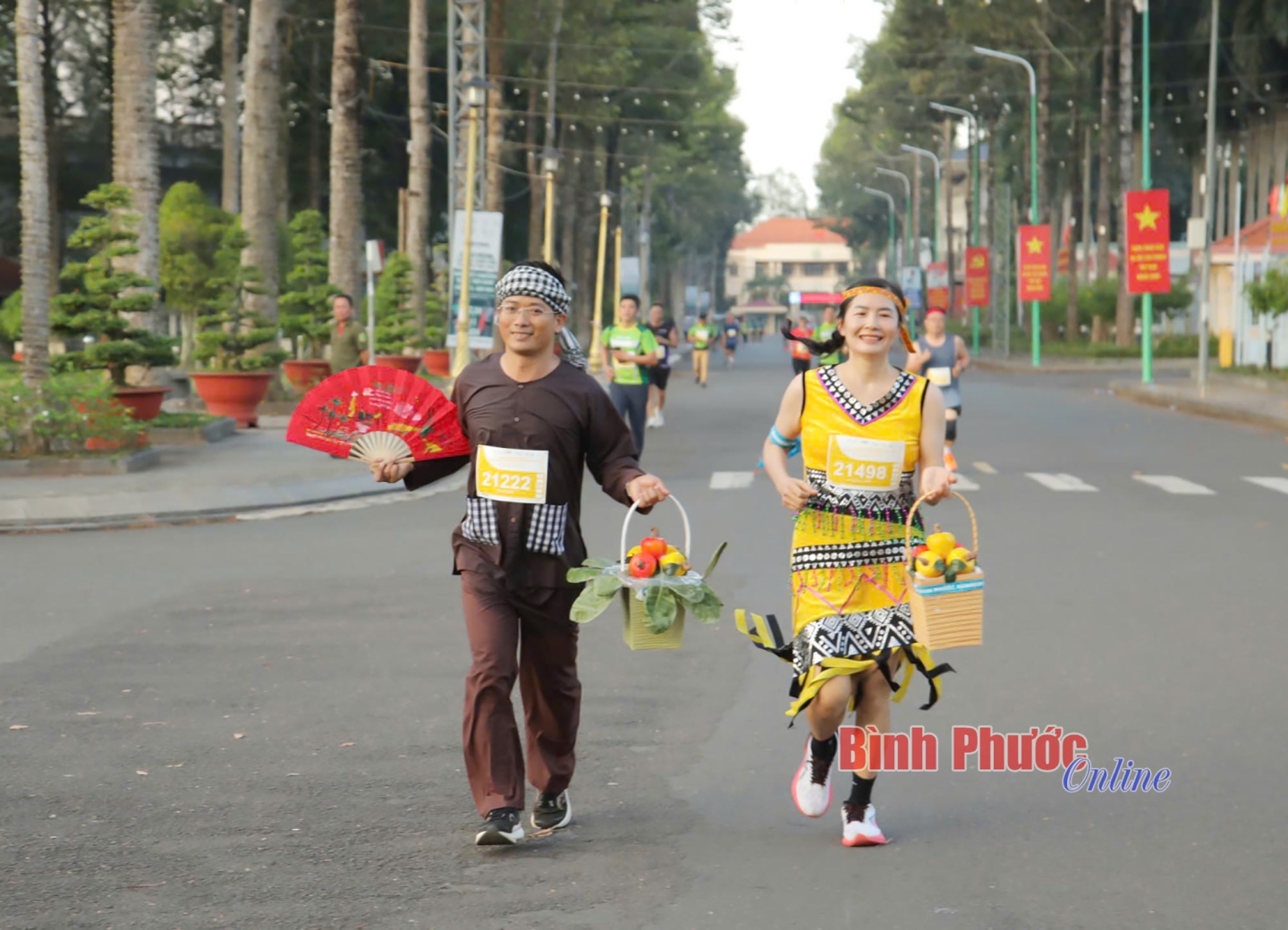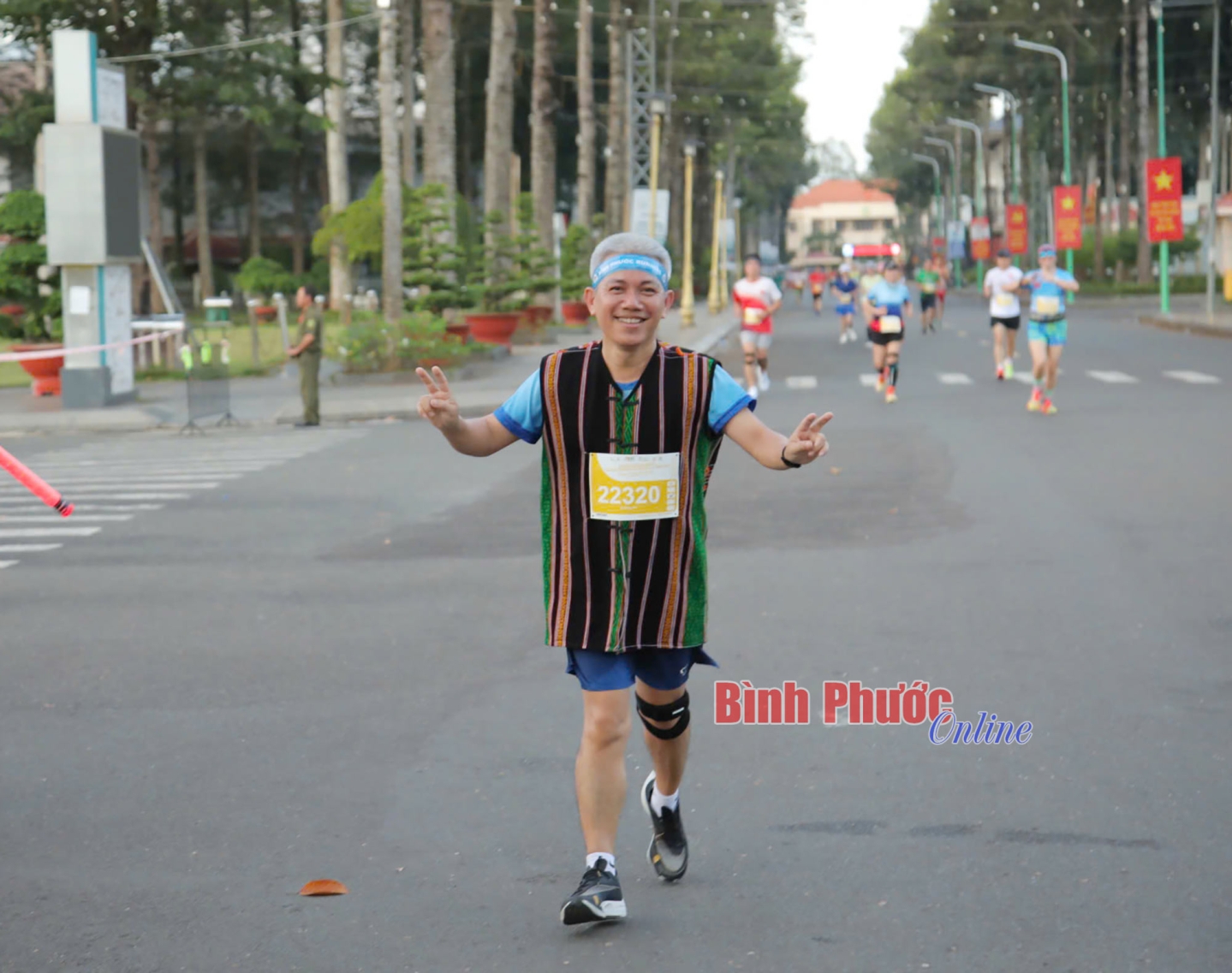 Bên cạnh đó, những bộ trang phục truyền thống của các dân tộc cũng mang nhiều dấu ấn đặc sắc. Anh Đỗ Phương Bình đến từ huyện Gò Dầu, tỉnh Tây Ninh đã chuẩn bị cho mình bộ trang phục S'tiêng để chinh phục cự ly 10km. Anh Bình bày tỏ: “Đây là lần đầu tiên tôi tham gia Giải Bình Phước marathon - Trường Tươi Group. Tôi đã chuẩn bị bộ trang phục truyền thống của đồng bào S'tiêng đem đến giải chạy với mong muốn thể hiện tình yêu của mình với vùng đất, con người Bình Phước”.