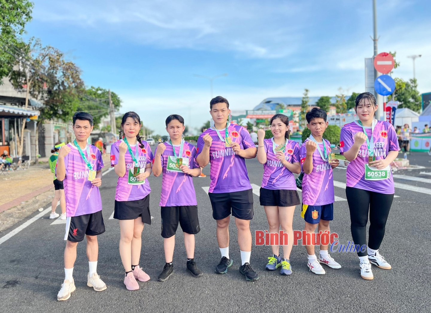 Các runner Phòng khám đa khoa Tâm Đức thể hiện tinh thần quyết thắng sau khi hoàn thành mục tiêu tại giải chạy Bình Phước marathon - Trường Tươi Group lần thứ II, năm 2024