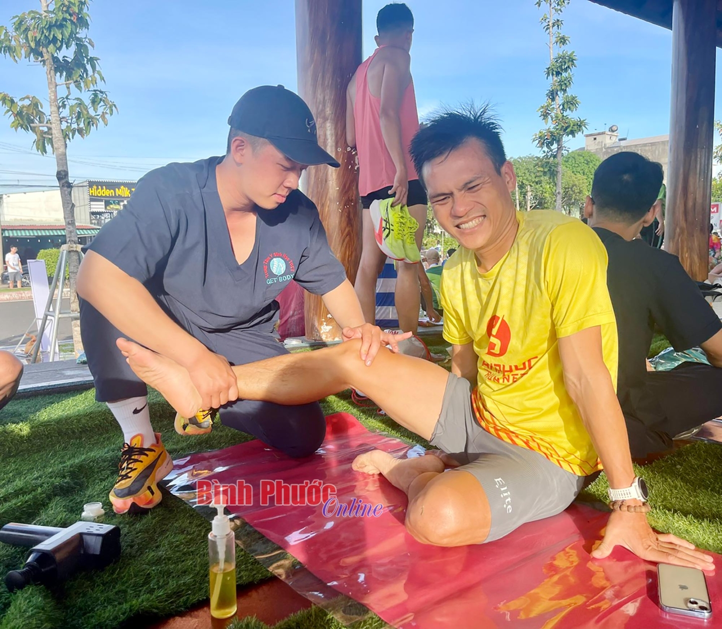 “Rất hài lòng và cảm ơn đội ngũ kỹ thuật viên của Trung tâm Y sinh học thể dục thể thao GET BODY tại giải Giải Bình Phước marathon - Trường Tươi Group lần thứ II, năm 2024. Tôi đã tham gia thi ở cự ly 42km. Về đến đích là tôi tìm đến khu vực y tế vì chân bị đau cơ. Tại đây, các kỹ thuật viên đã niềm nở, tận tâm massage trị liệu, xử lý chấn thương nên chỉ trong thời gian ngắn, tôi đã trở lại sức khỏe bình thường, đi lại dễ dàng” - VĐV Nguyễn Văn Chung đến từ CLB Runner Vạn Phúc, TP. Hồ Chí Minh chia sẻ.
