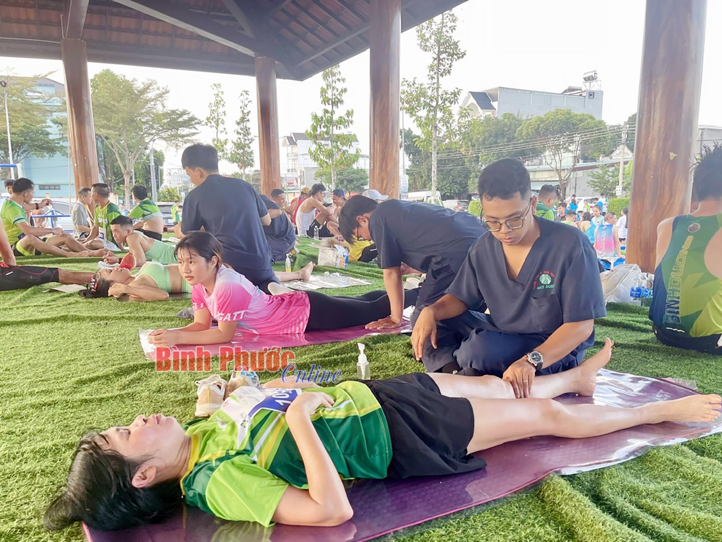 Với mong muốn hỗ trợ các VĐV tham gia giải đấu trong điều kiện y tế tốt nhất, tại Giải Bình Phước marathon - Trường Tươi Group lần thứ II, năm 2024, Trung tâm Y sinh học thể dục thể thao GET BODY đã cử 1 bác sĩ thể thao và 6 kỹ thuật viên hỗ trợ tầm soát vận động trước giải đấu, phục hồi cho các VĐV bằng phương pháp giãn cơ, massage trị liệu, xử lý chấn thương thể thao và hướng dẫn các bài tập phục hồi sức khỏe, thể lực, tâm lý cho VĐV sau thi đấu.