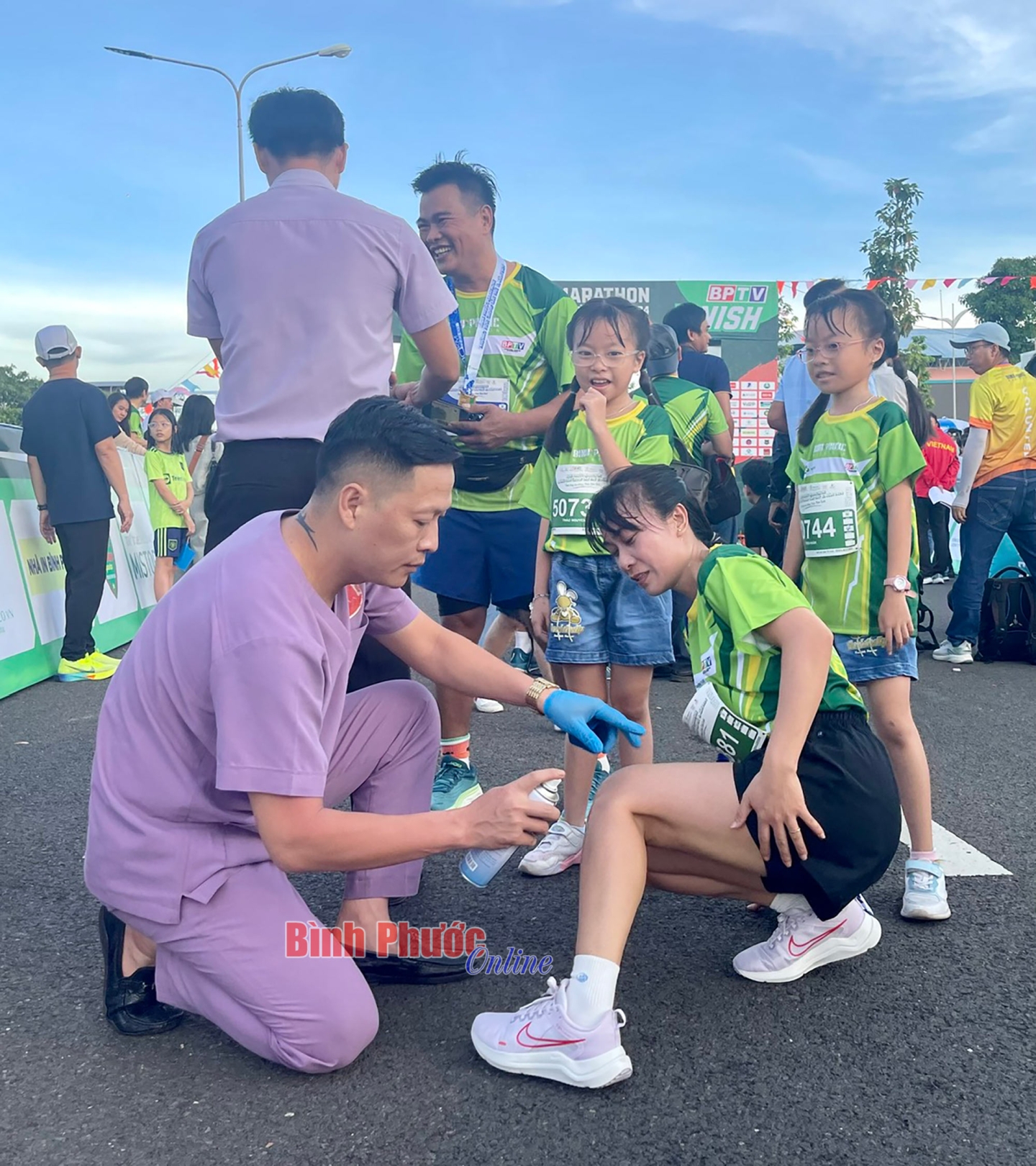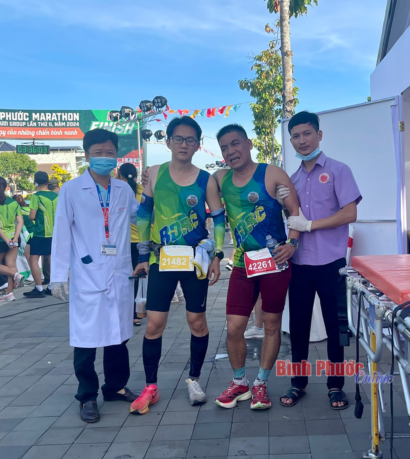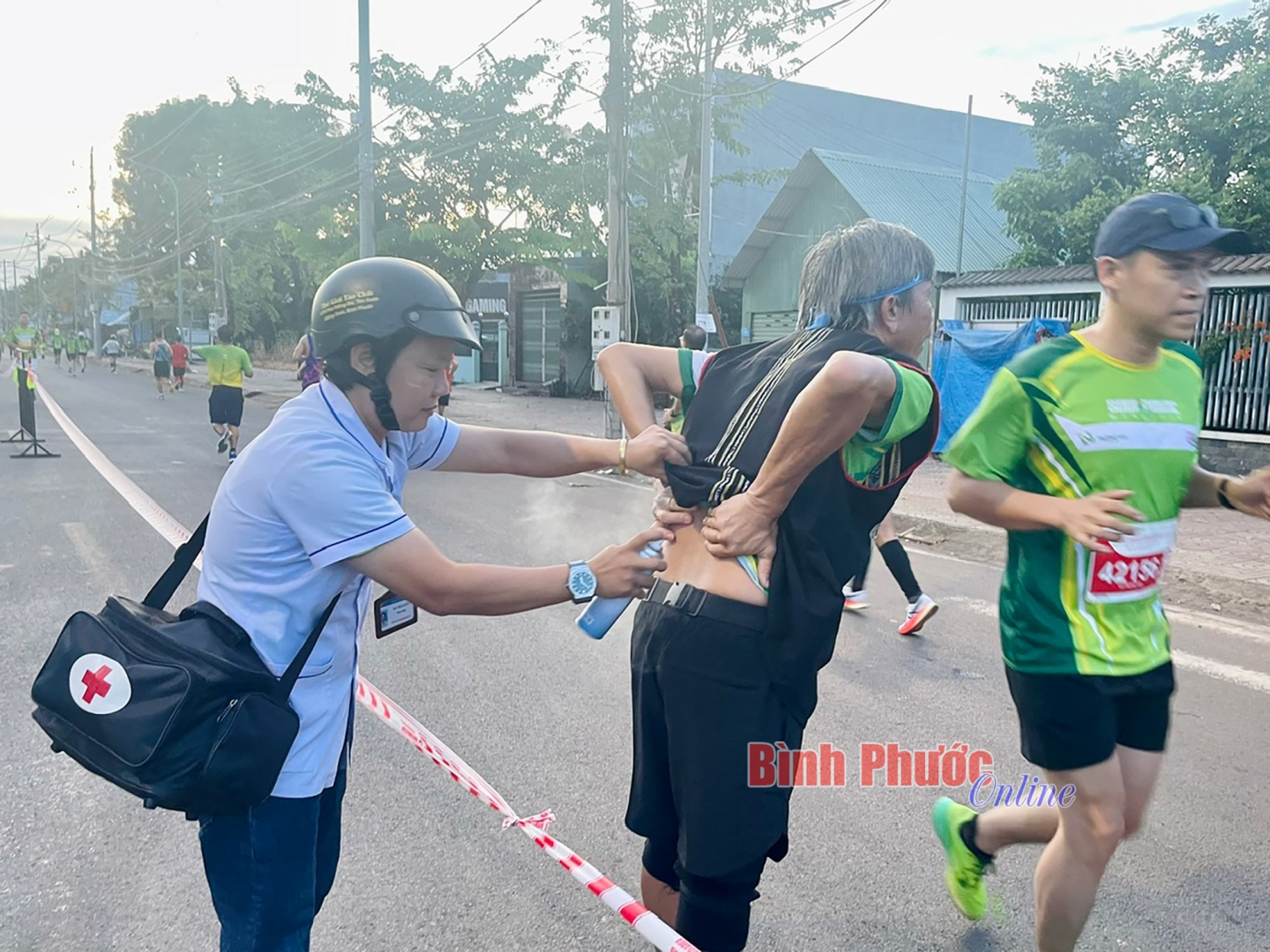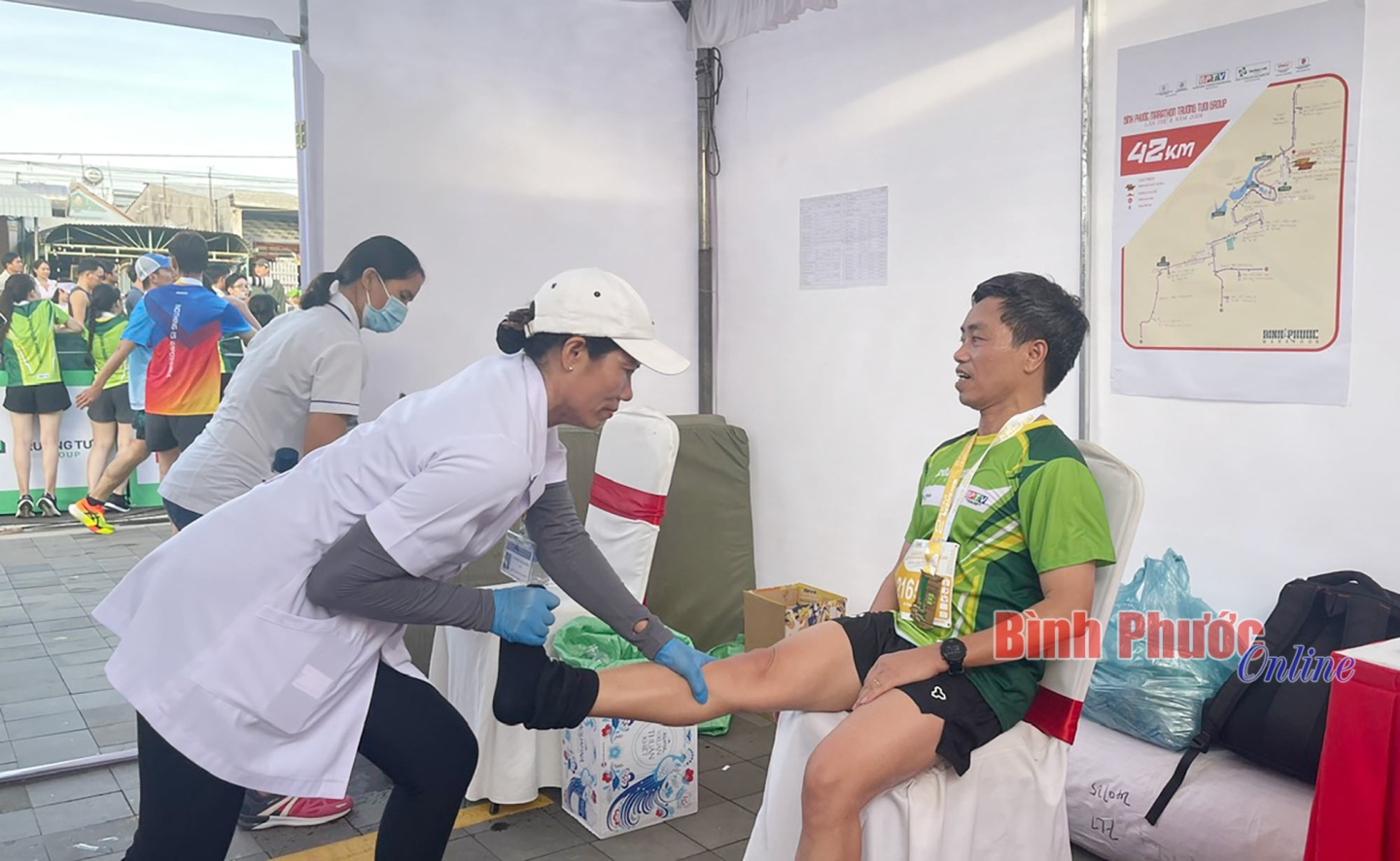 Bác sĩ Trịnh Xuân Thiều, Giám đốc Trung tâm Y tế thành phố Đồng Xoài cho biết: Tham gia môn thể thao marathon, VĐV sẽ đối mặt với nguy cơ gặp các chấn thương về gối, đau nhức chân khi chạy tốc độ cao. Cùng với đó dễ bị chuột rút, mất nước, thậm chí là nhịp tim nhanh gây khó thở, tức ngực... Do đó, ngay từ khi giải bắt đầu cho đến kết thúc, đội ngũ y, bác sĩ lúc nào cũng trong tâm thế sẵn sàng chăm sóc, xử lý các trường hợp khẩn cấp có thể xảy ra trên đường đua, theo đúng hướng dẫn ngành y tế tỉnh và thông điệp mà Ban tổ chức đưa ra - “chạy vì sức khỏe cộng đồng”.