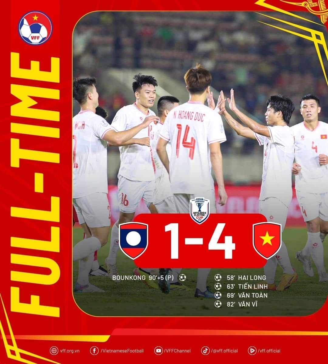 Thắng tuyển Lào 4-1, tuyển VN đã có những lợi thế nhất định về hiệu số và tạm vươn lên dẫn đầu bảng B ASEAN Cup 2024, khi mà trong trận đấu sớm trước đó, Indonesia chỉ giành được chiến thắng cách biệt 1 bàn trước Myanmar.