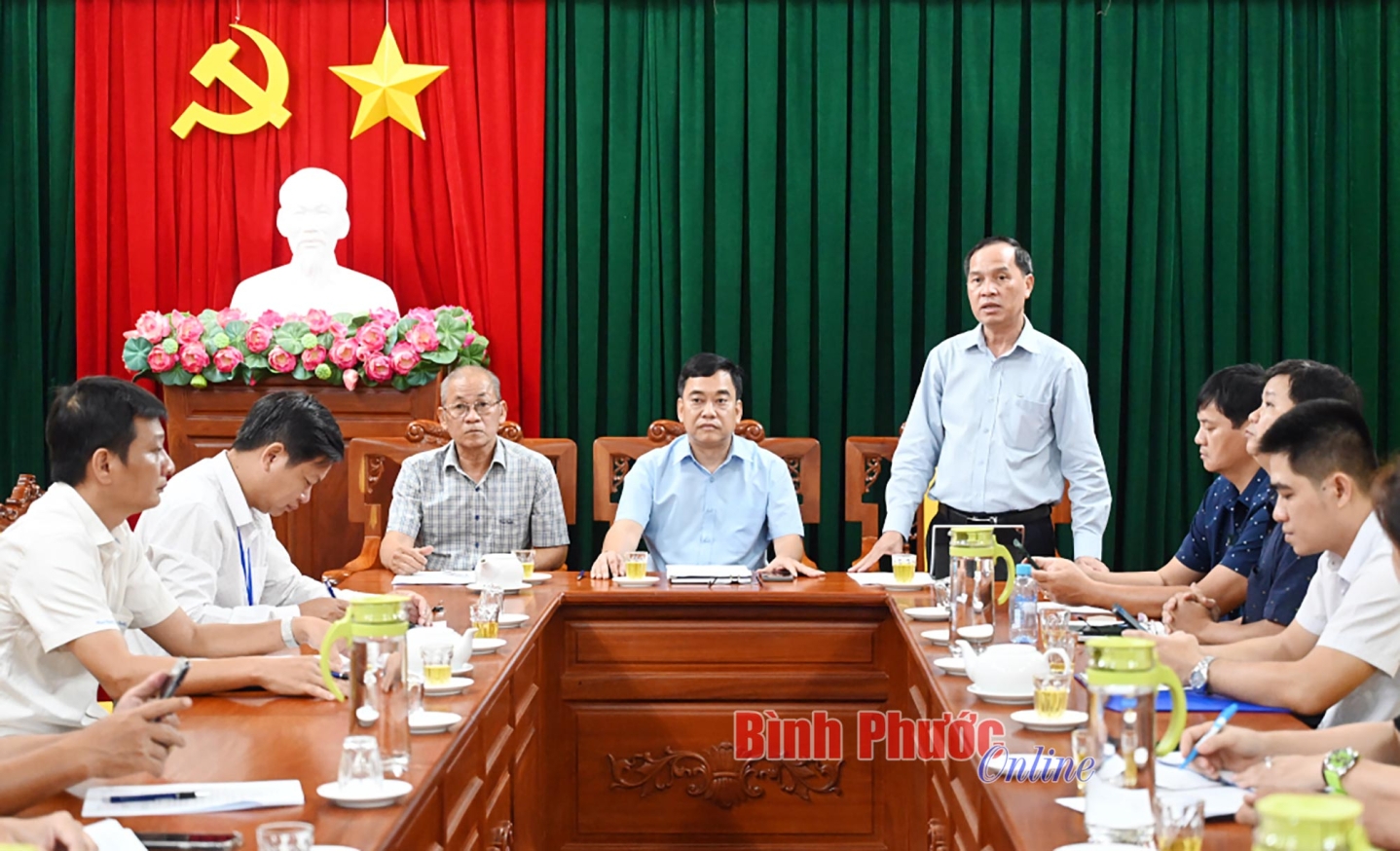 Phó Giám đốc - Phó Tổng Biên tập Đài Phát thanh - Truyền hình và Báo Bình Phước Phan Văn Thảo phát biểu tại buổi làm việc