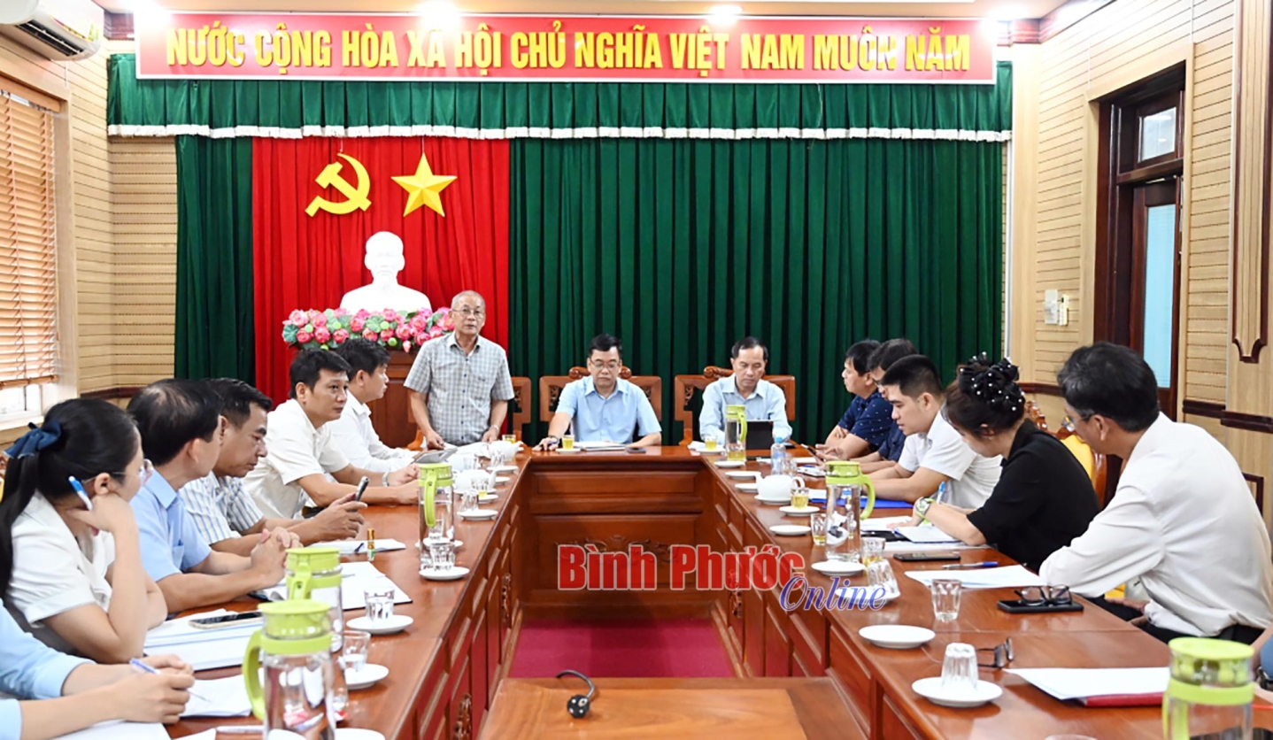 Phó Chủ tịch UBND thị xã Phước Long Nguyễn Văn Dũng trao đổi một số nội dung các thành viên Ban tổ chức quan tâm