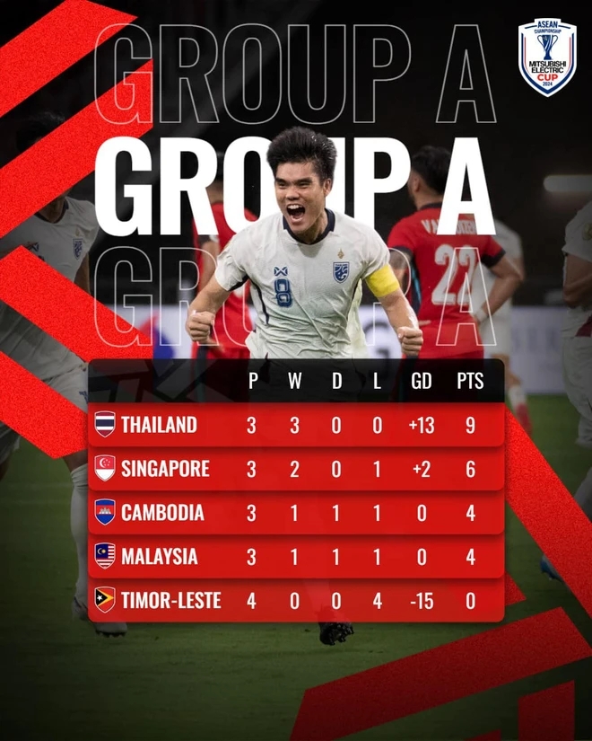 Với kết quả này, Thái Lan giành 9 điểm tuyệt đối sau ba chiến thắng, giành vé đầu tiên vào bán kết AFF Cup 2024 với ngôi nhất bảng A.
