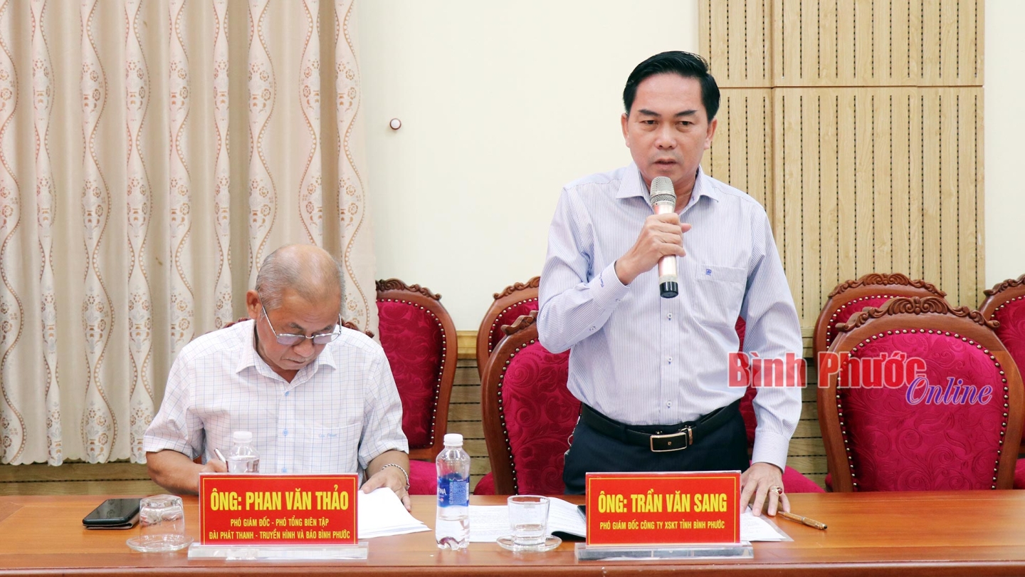 Ông Trần Văn Sang, Phó Giám đốc Công ty TNHH MTV Xổ số kiến thiết và Dịch vụ tổng hợp Bình Phước phát biểu tại họp báo