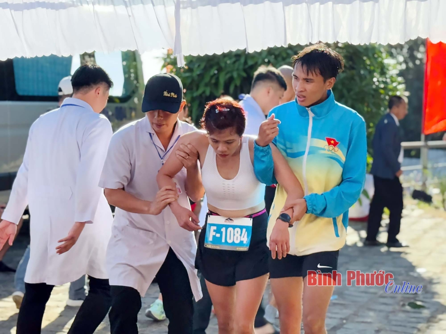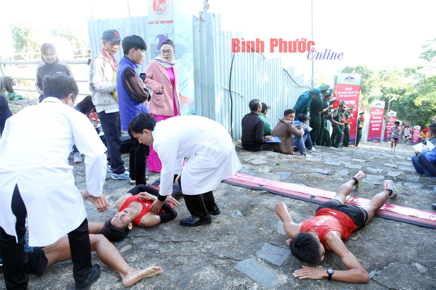 Lực lượng y tế hỗ trợ vận động viên hồi phục sức khỏe khi về đích - Ảnh: Phú Quý
