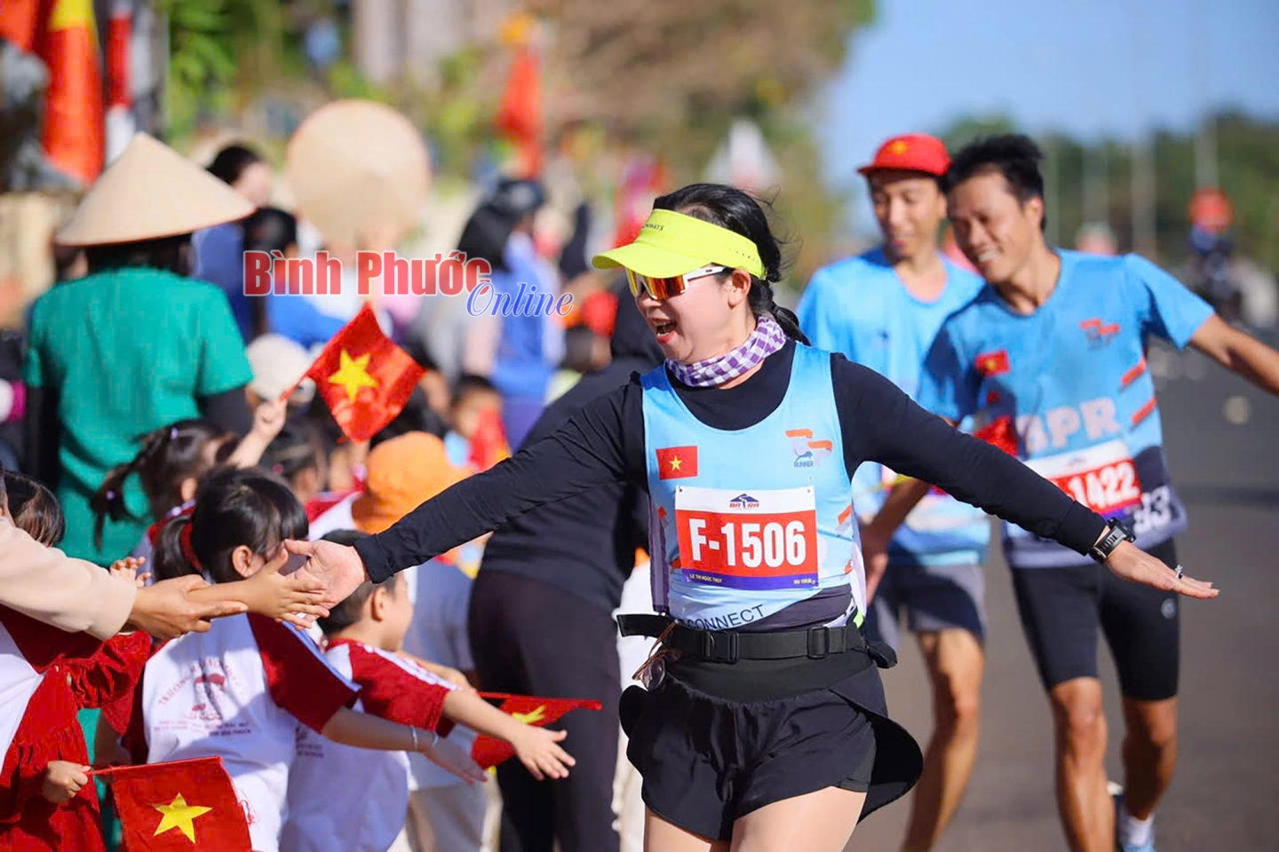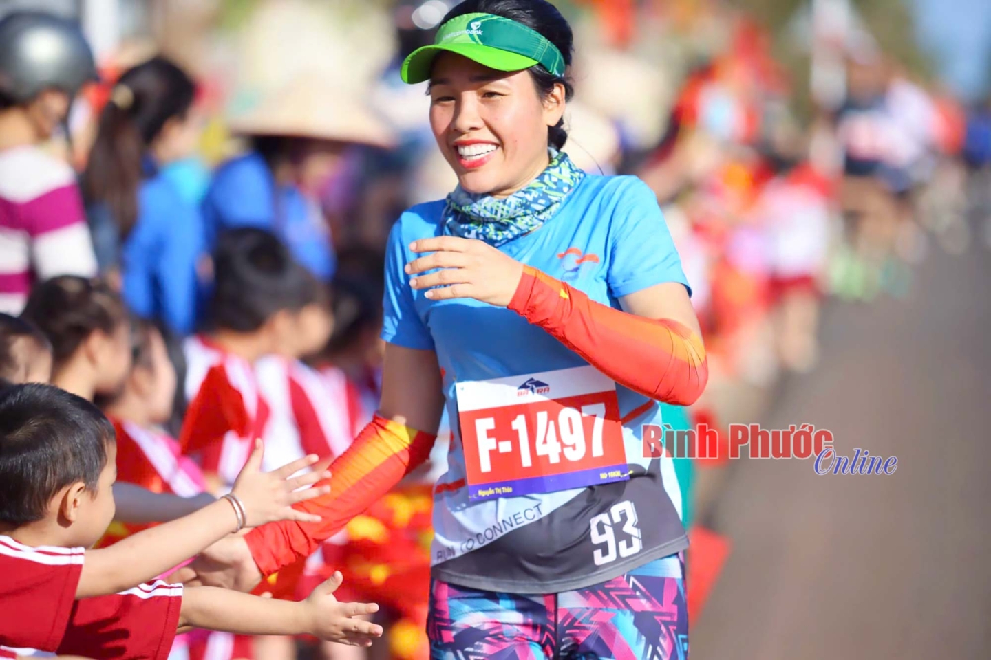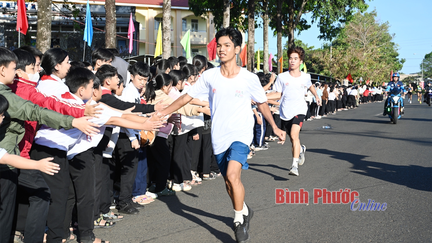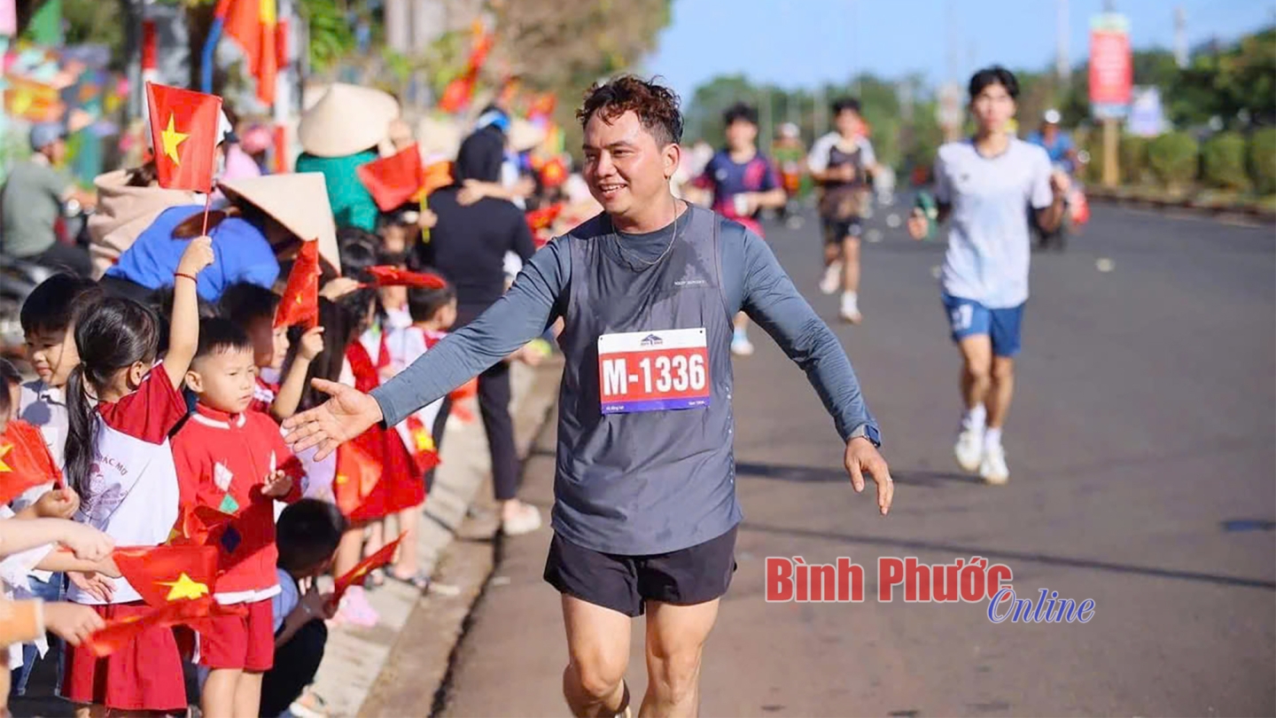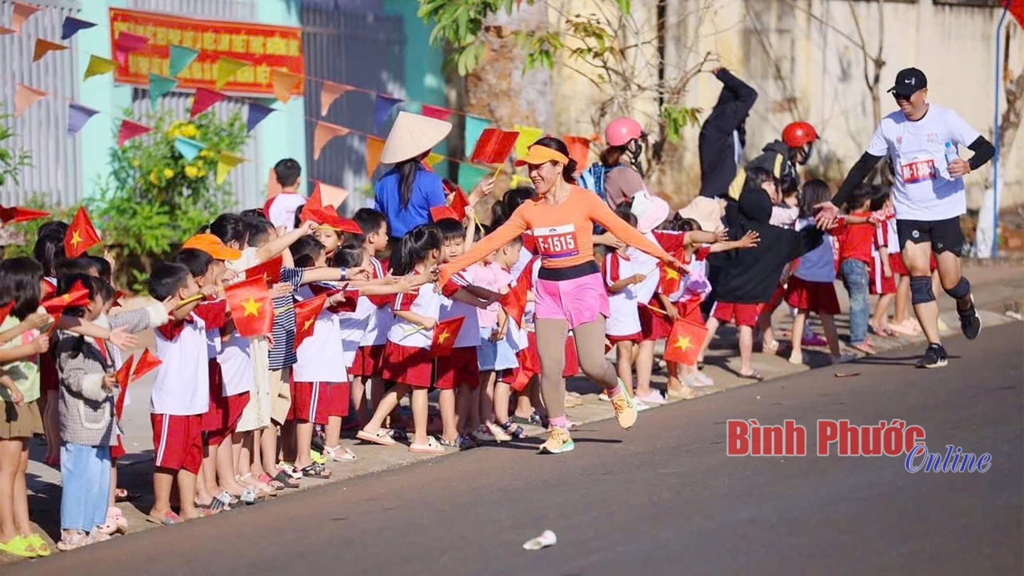 Những cái chạm tay trên đường đua đã tiếp thêm động lực cho các vận động viên (Ảnh của Câu lạc bộ Bình Phước Runners)