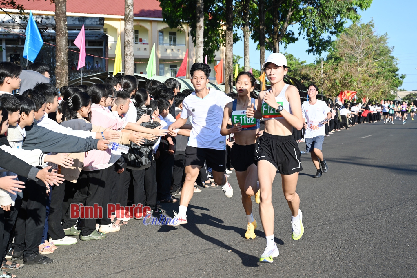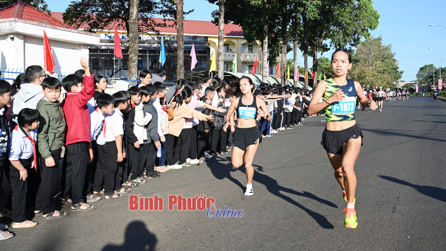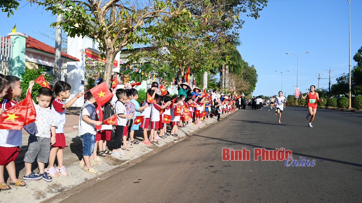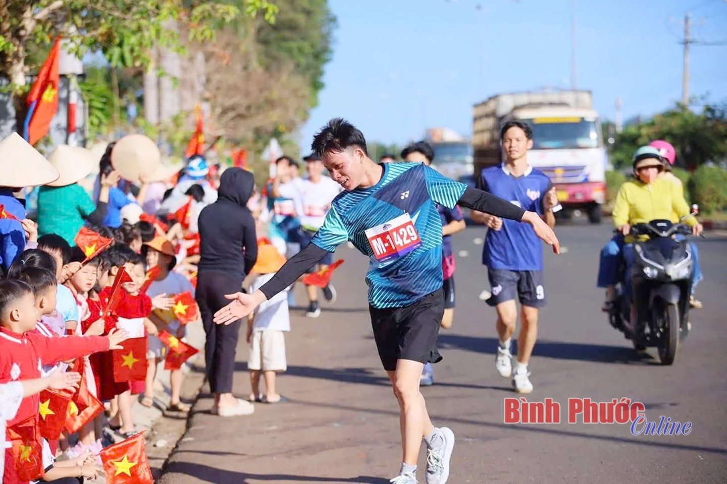 Những cái chạm tay trên đường đua đã tiếp thêm động lực cho các vận động viên (Ảnh của Câu lạc bộ Bình Phước Runners)