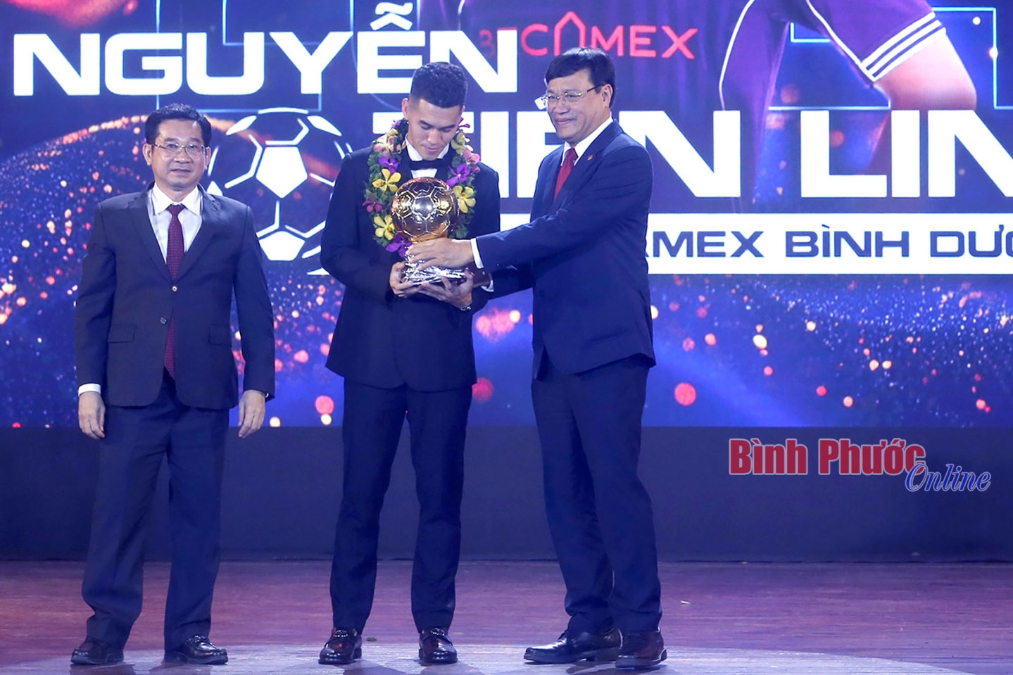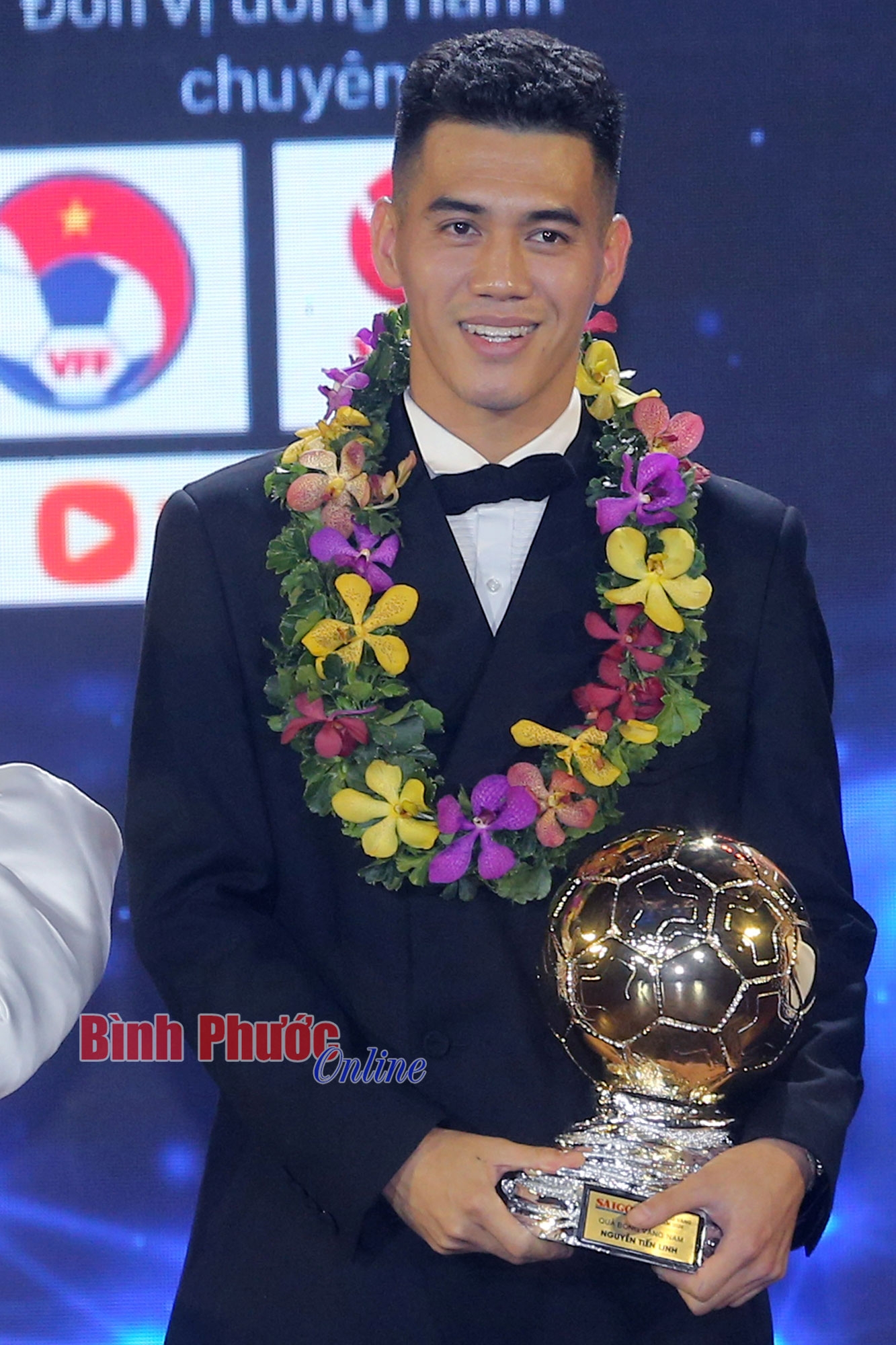 Ban tổ chức trao Quả bóng Vàng cho cầu thủ Nguyễn Tiến Linh (CLB Becamex Bình Dương)