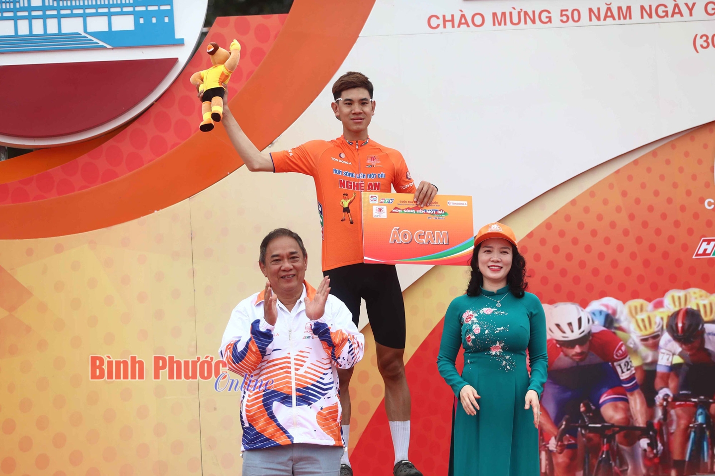 Ông Ngô Quang Vinh trao áo cam cho tay đua Nguyễn Anh Huy