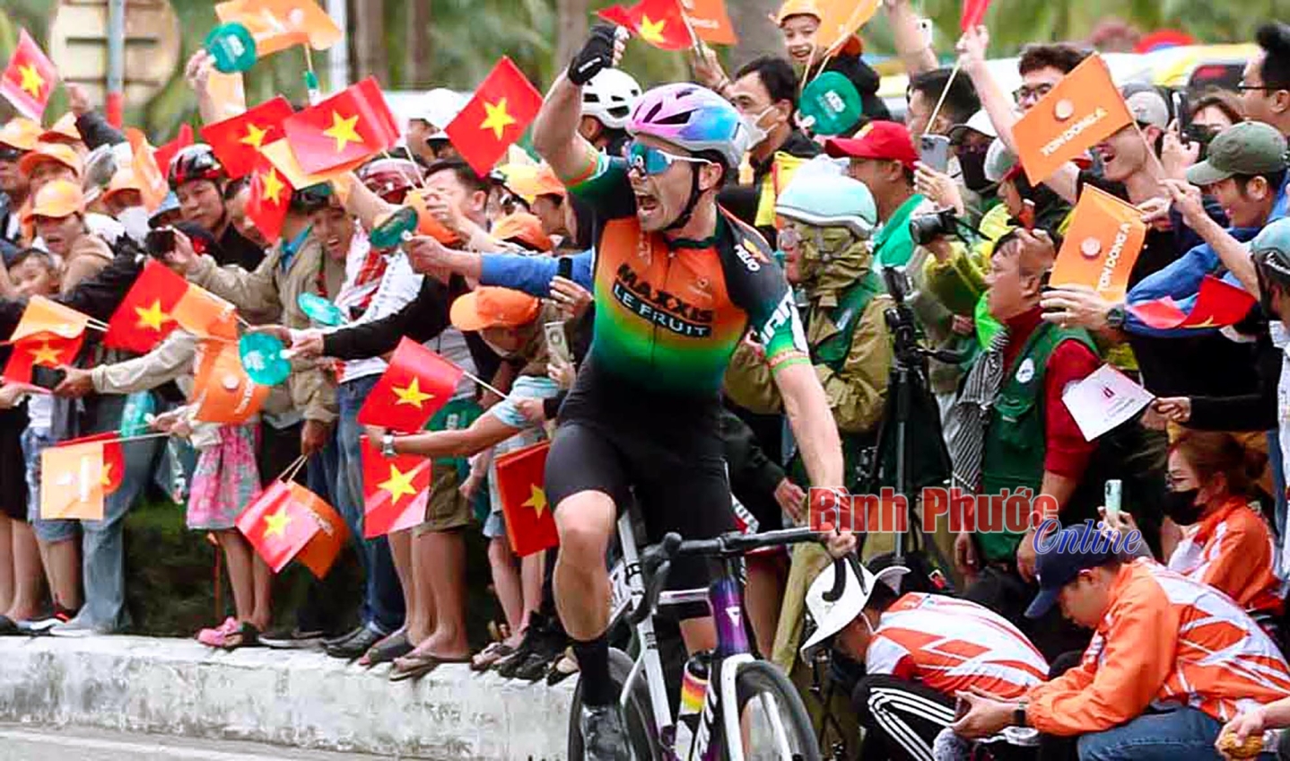 Tay đua Ethan Batt vui mừng sau khi về nhất tại TP. Đà Nẵng