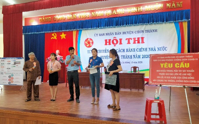 Ở phần thi tiểu phẩm tuyên truyền bằng hình thức sân khấu hóa, các đội thi đã mang đến nhiều tiểu phẩm vui nhộn, phê phán, lên án những hành vi nhũng nhiễu cho nhân dân khi đến giải quyết thủ tục hành chính. Qua các tiểu phẩm, các đội cũng tuyên truyền việc thực hiện tiếp nhận và giải quyết thủ tục hành chính dịch vụ công trực tuyến mức độ 3,4; phong cách, tác phong, ứng xử văn hóa của cán bộ, công chức tiếp công dân tại bộ phận một cửa.