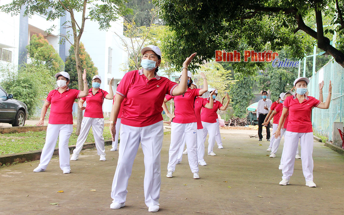 Một buổi tập thể dục dưỡng sinh của Hội Người cao tuổi thị trấn Đức Phong (Bù Đăng). Những CLB như thế này đã trở thành sân chơi bổ ích cho người cao tuổi hiện nay