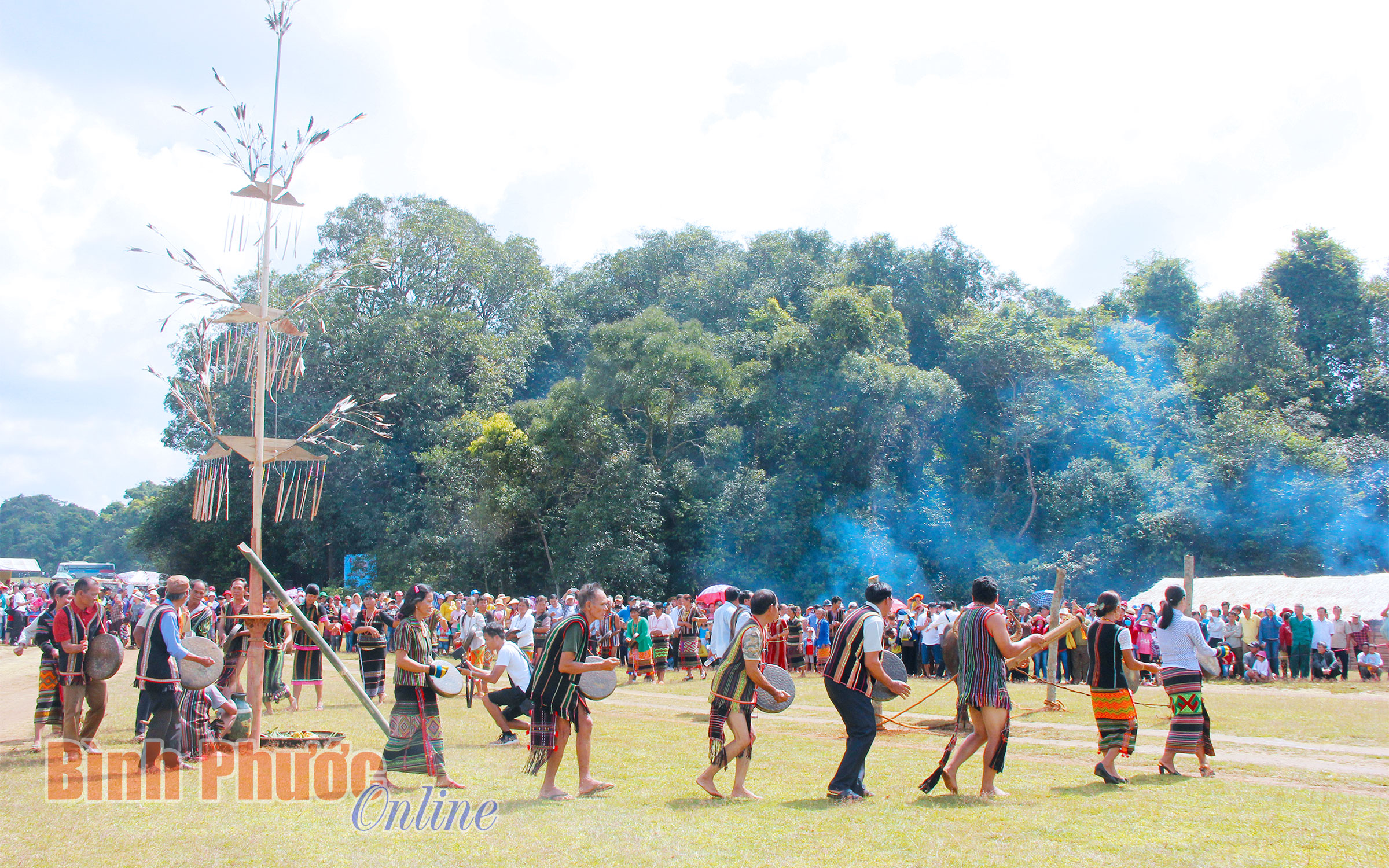 Đồng bào dân tộc S’tiêng, M’nông ở Bình Phước trong hoạt động phục dựng lễ hội truyền thống do tỉnh Bình Phước tổ chức - Ảnh: M.L