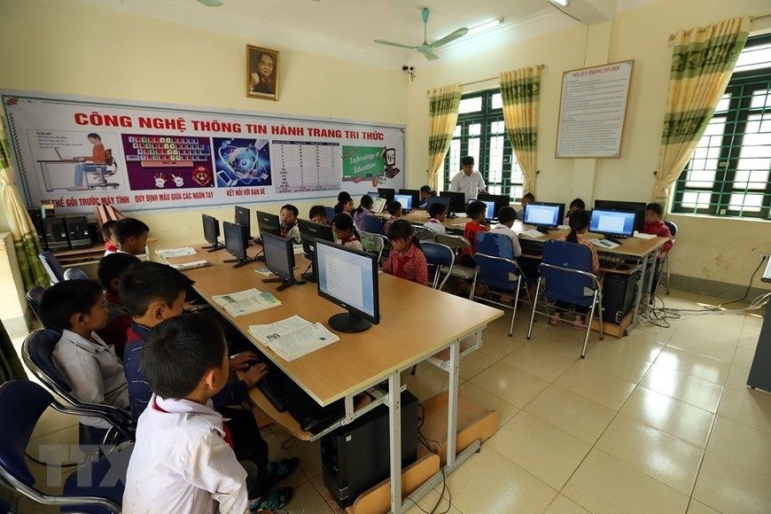 Máy vi tính được trang bị cho học sinh trong trường Tiểu học Mường Phăng, xã Mường Phăng, huyện Điện Biên, tỉnh Điện Biên. (Ảnh: Phan Tuấn Anh/TTXVN)
