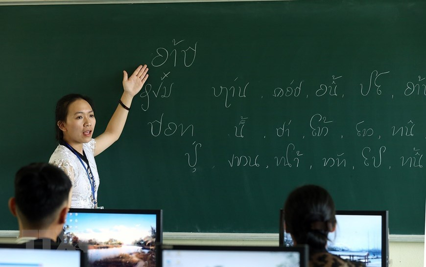 Website Hocchuthai.com tiện dụng khi có thể truy cập và học qua điện thoại, nhằm hỗ trợ phương pháp tự học chữ Thái cho học sinh và những ai có nhu cầu tìm hiểu về chữ viết của người Thái để giữ gìn, phát huy bản sắc dân tộc. (Ảnh: Phan Tuấn Anh/TTXVN)