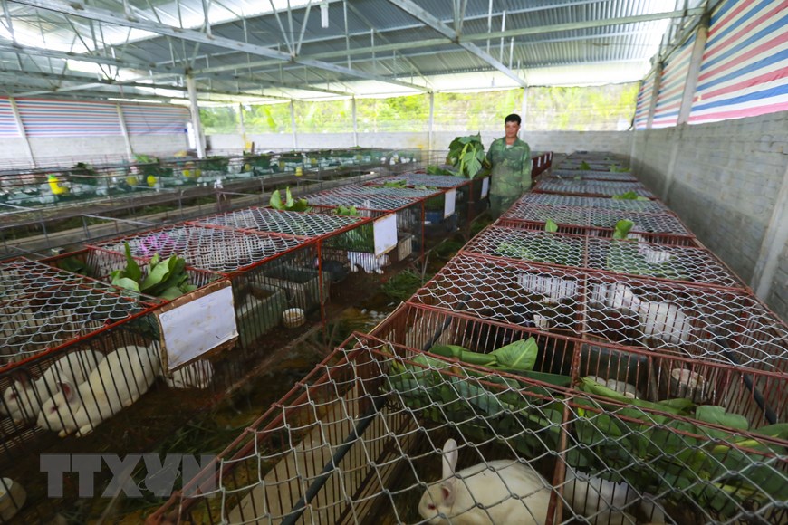 Một mô hình nuôi thỏ giúp người dân tăng thêm thu nhập cho hộ gia đình tại Điện Biên. (Ảnh: Phan Tuấn Anh/TTXVN)