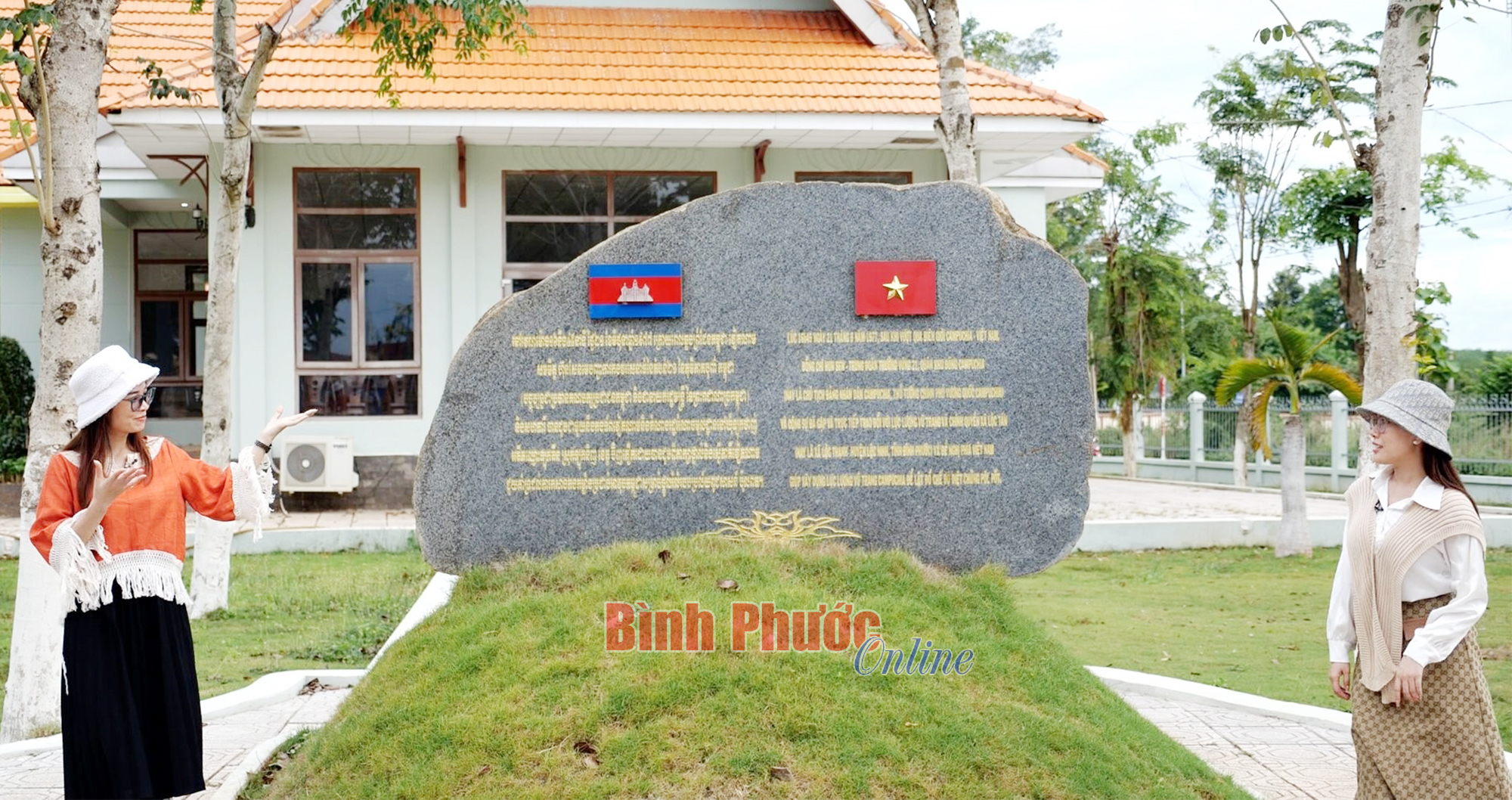 Tại mỗi điểm di tích đều có bia đá giới thiệu, thuyết minh khắc 2 thứ tiếng Việt và Khmer