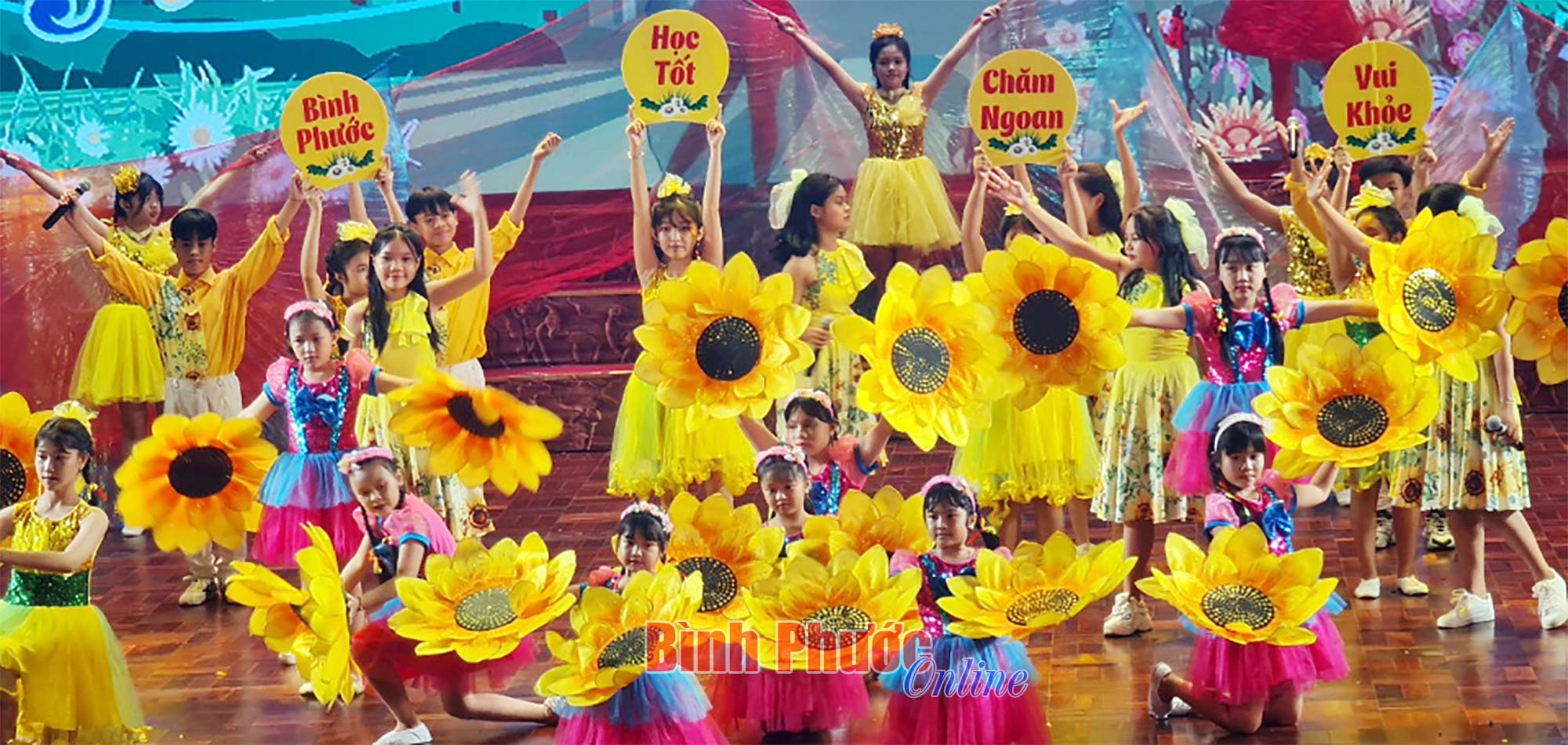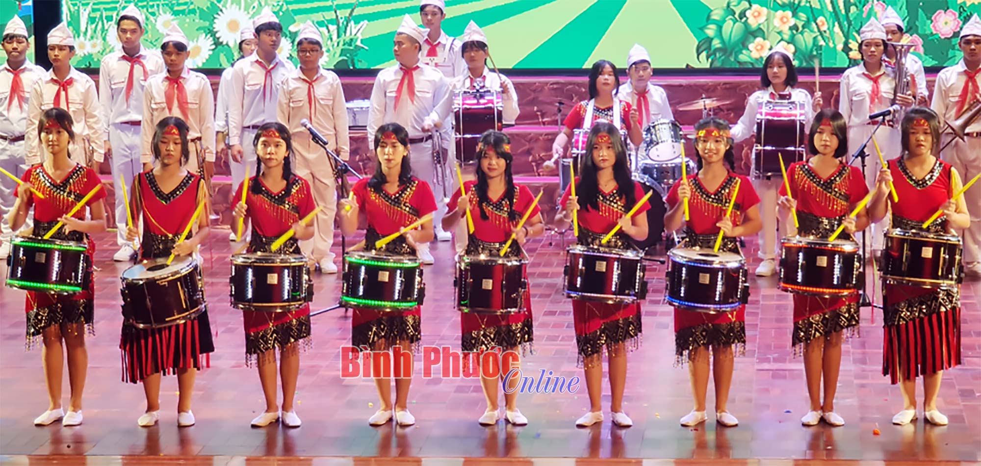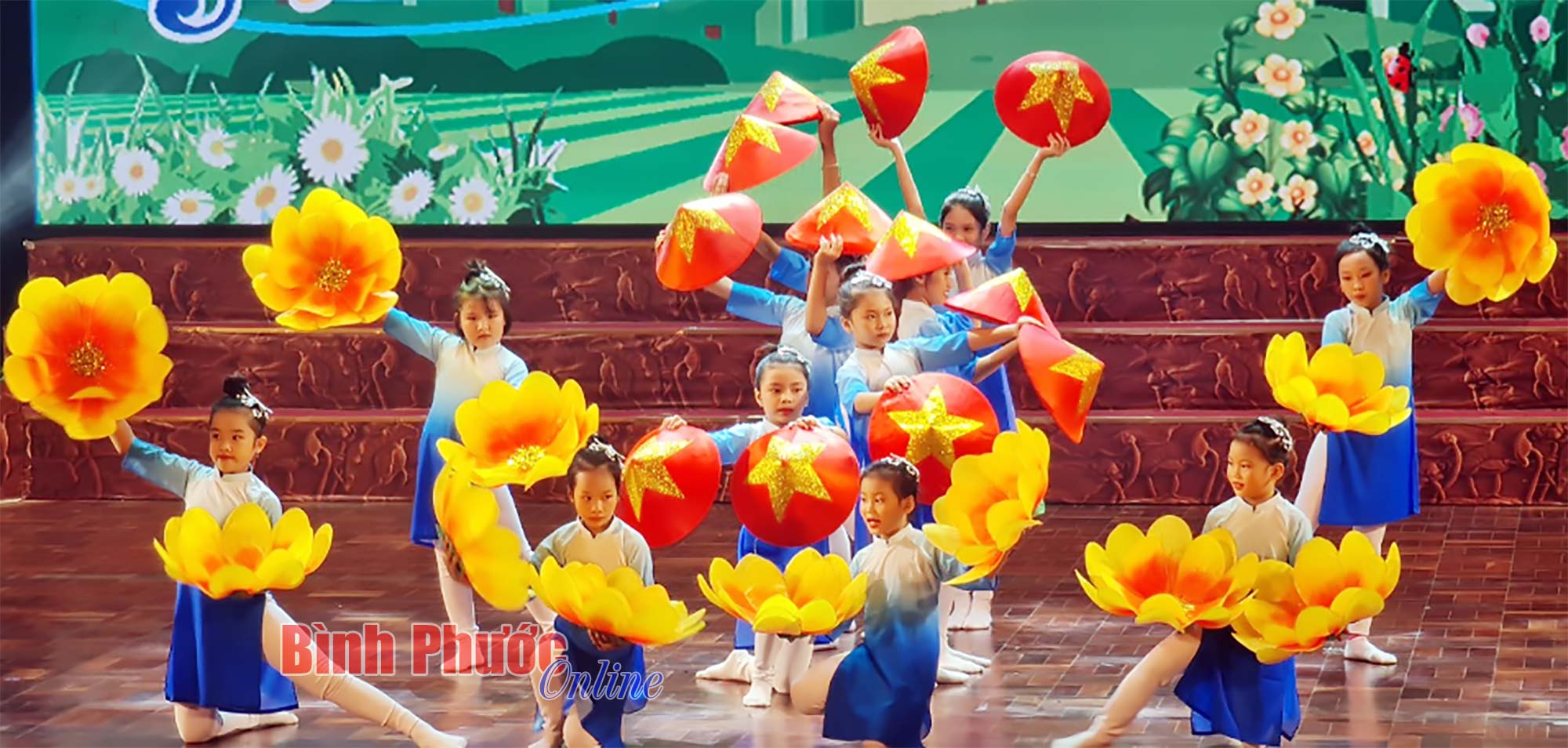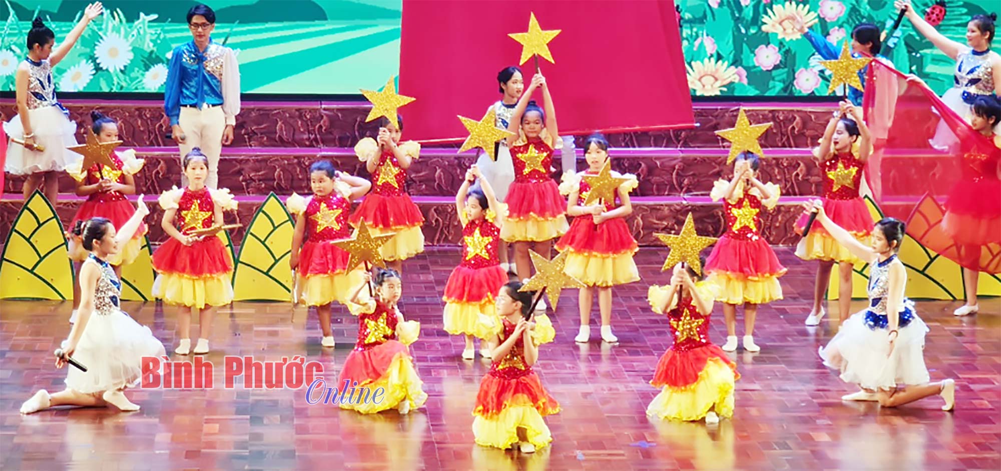 Tiết mục hát múa mở màn chương trình khai mạc trong Liên hoan nghệ thuật thiếu nhi “Hoa phượng đỏ” tỉnh Bình Phước lần thứ XXII