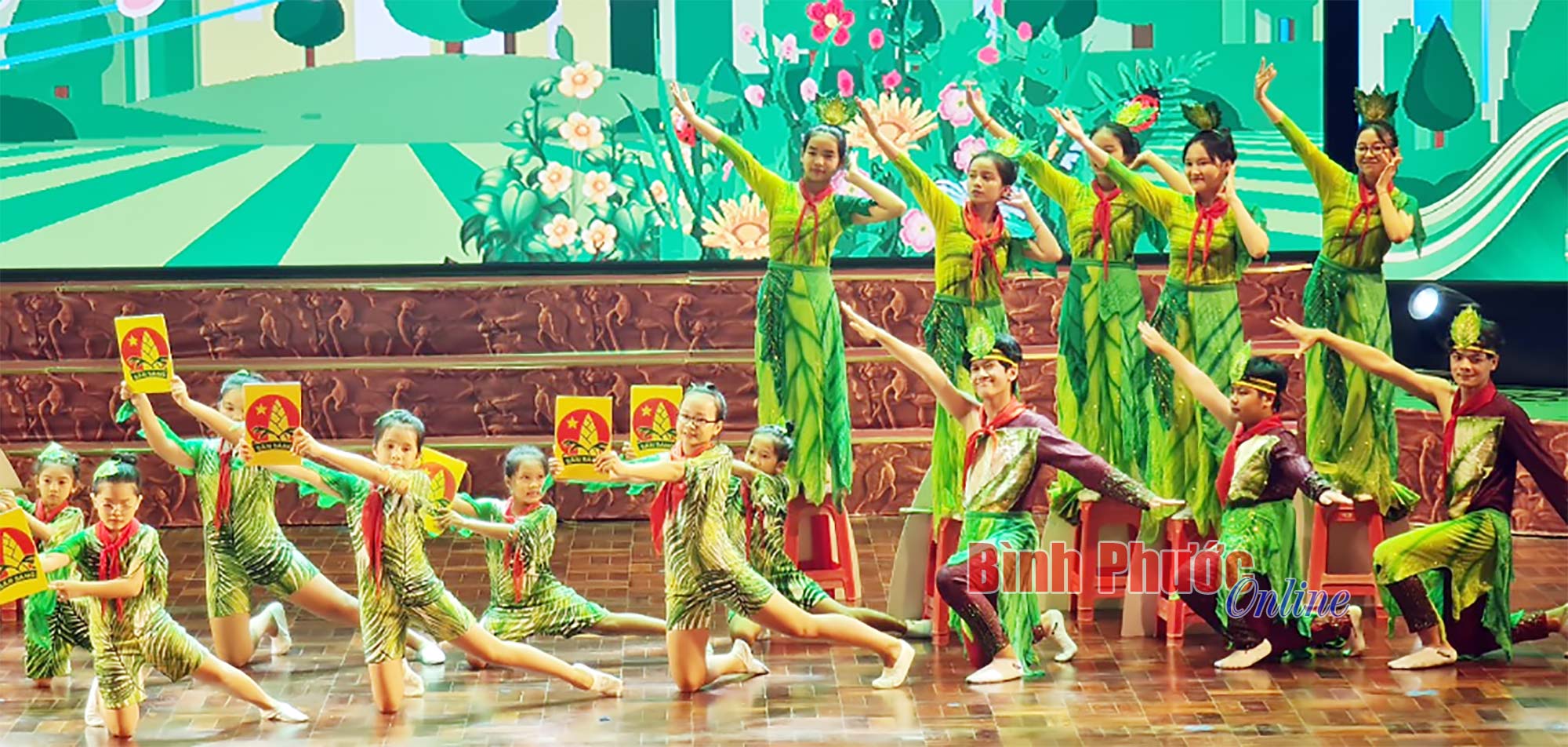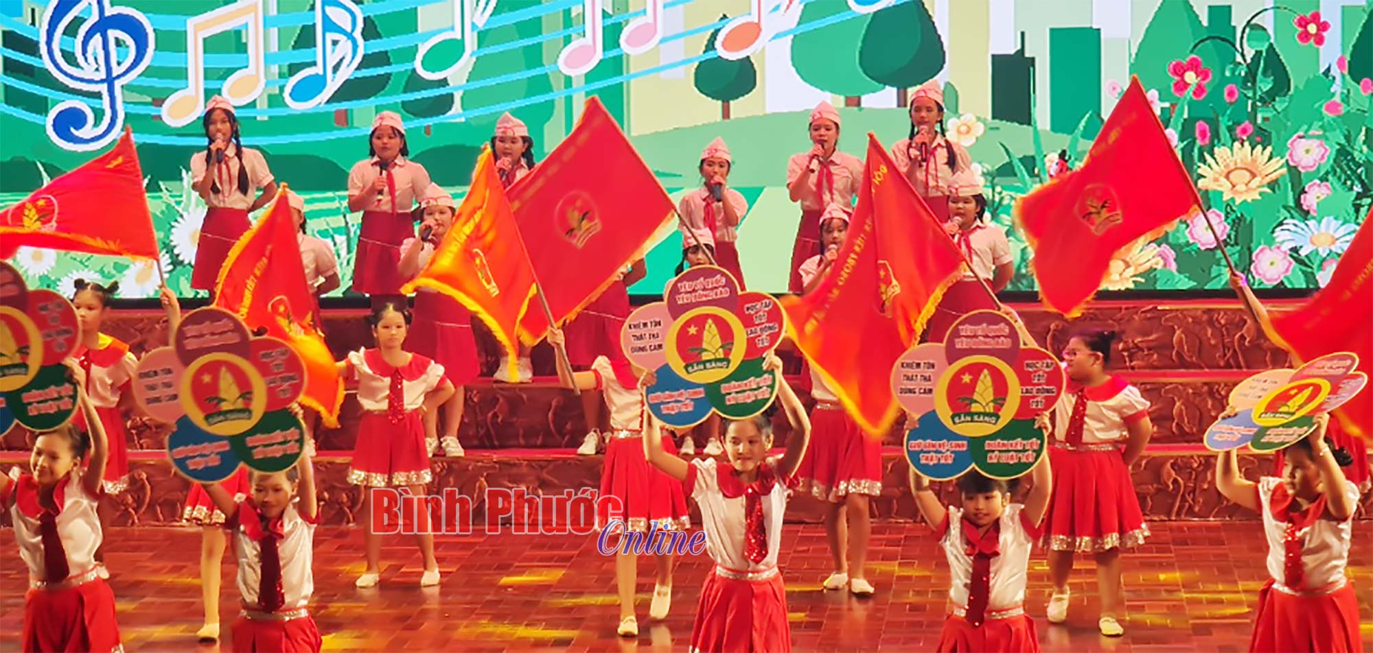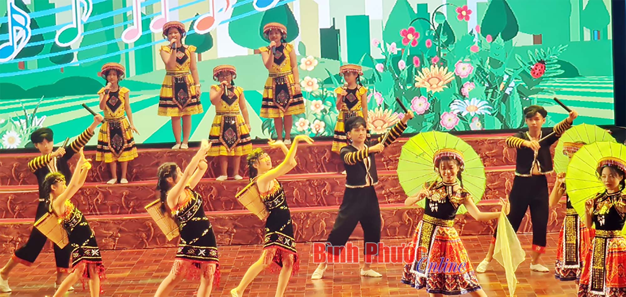 Tiết mục hát múa mở màn chương trình khai mạc trong Liên hoan nghệ thuật thiếu nhi “Hoa phượng đỏ” tỉnh Bình Phước lần thứ XXII