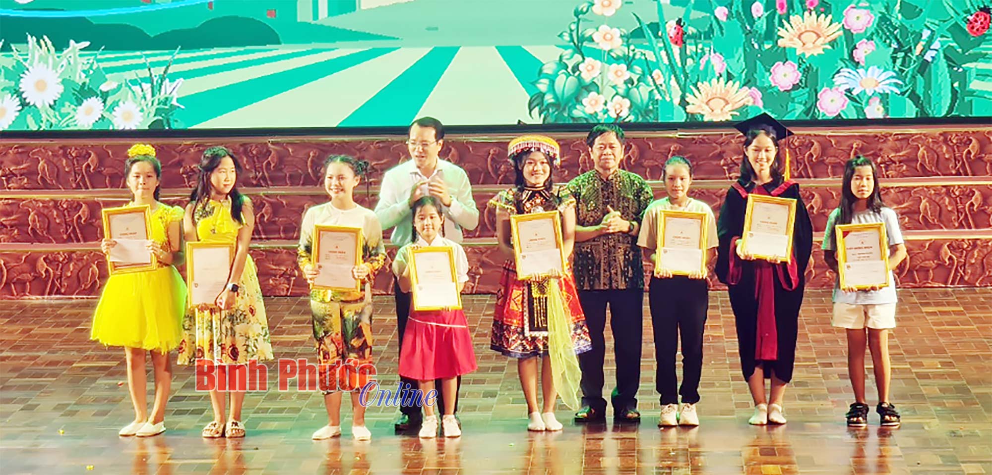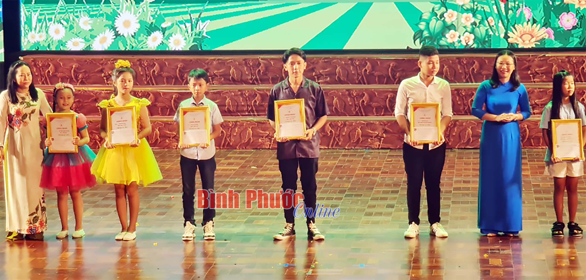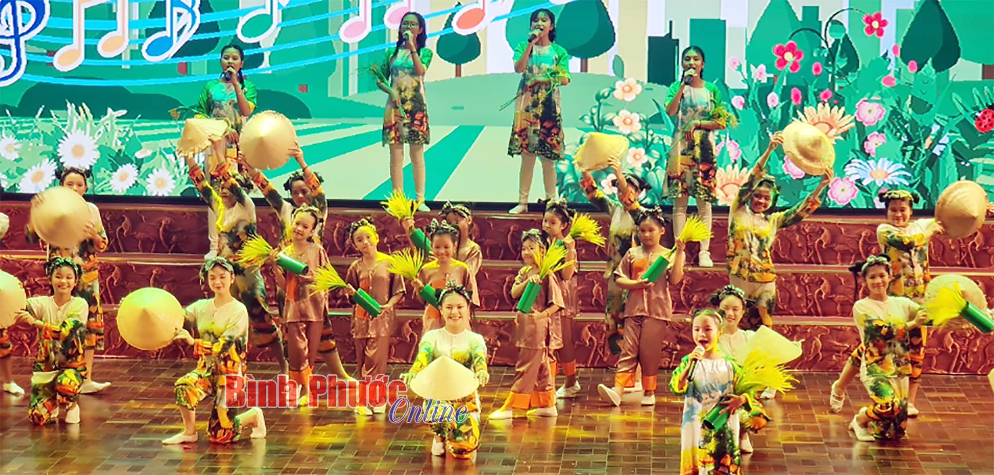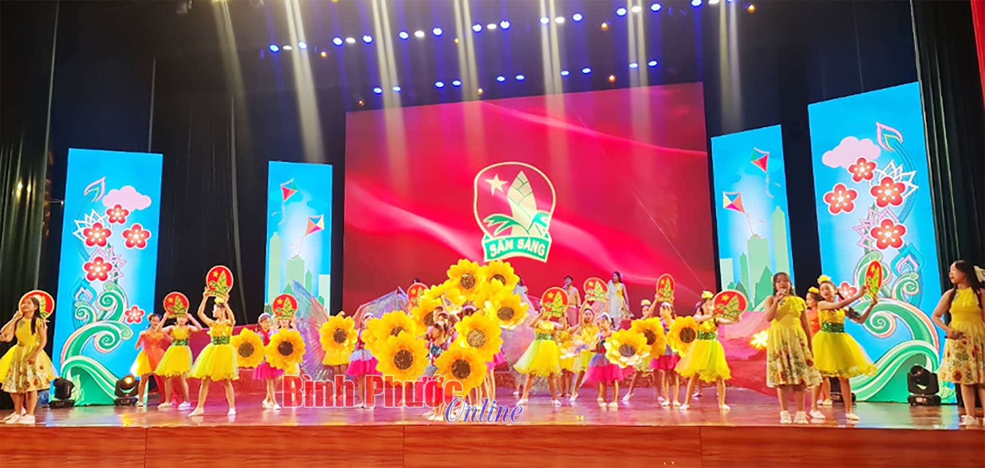 Tiết mục hát múa mở màn chương trình khai mạc trong Liên hoan nghệ thuật thiếu nhi “Hoa phượng đỏ” tỉnh Bình Phước lần thứ XXII