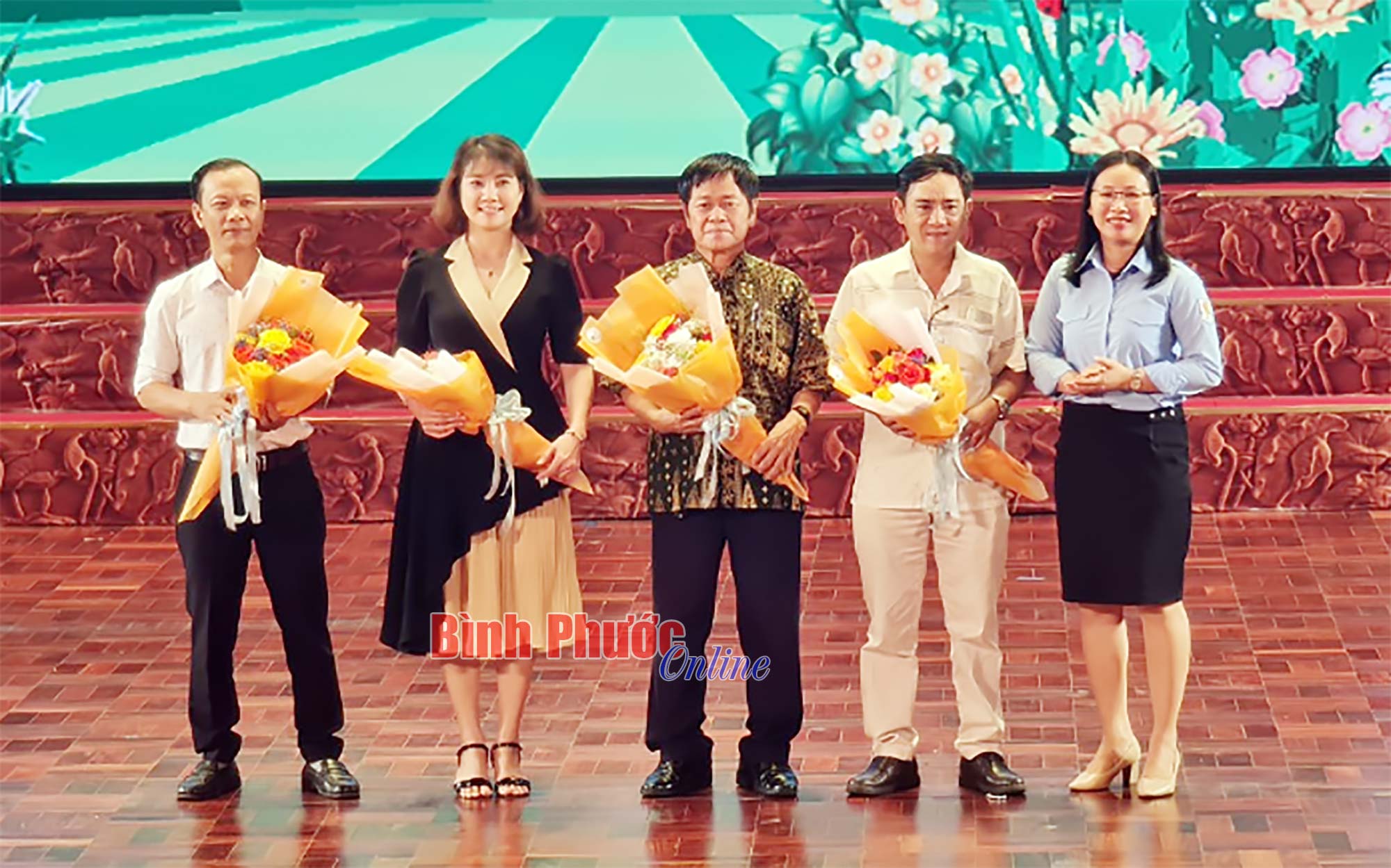 Chị Lê Thị Hồng Phấn, Phó bí thư Tỉnh đoàn - Chủ tịch Hội đồng Đội tỉnh Bình Phước, Trưởng Ban tổ chức liên hoan tặng hoa cho Ban giám khảo