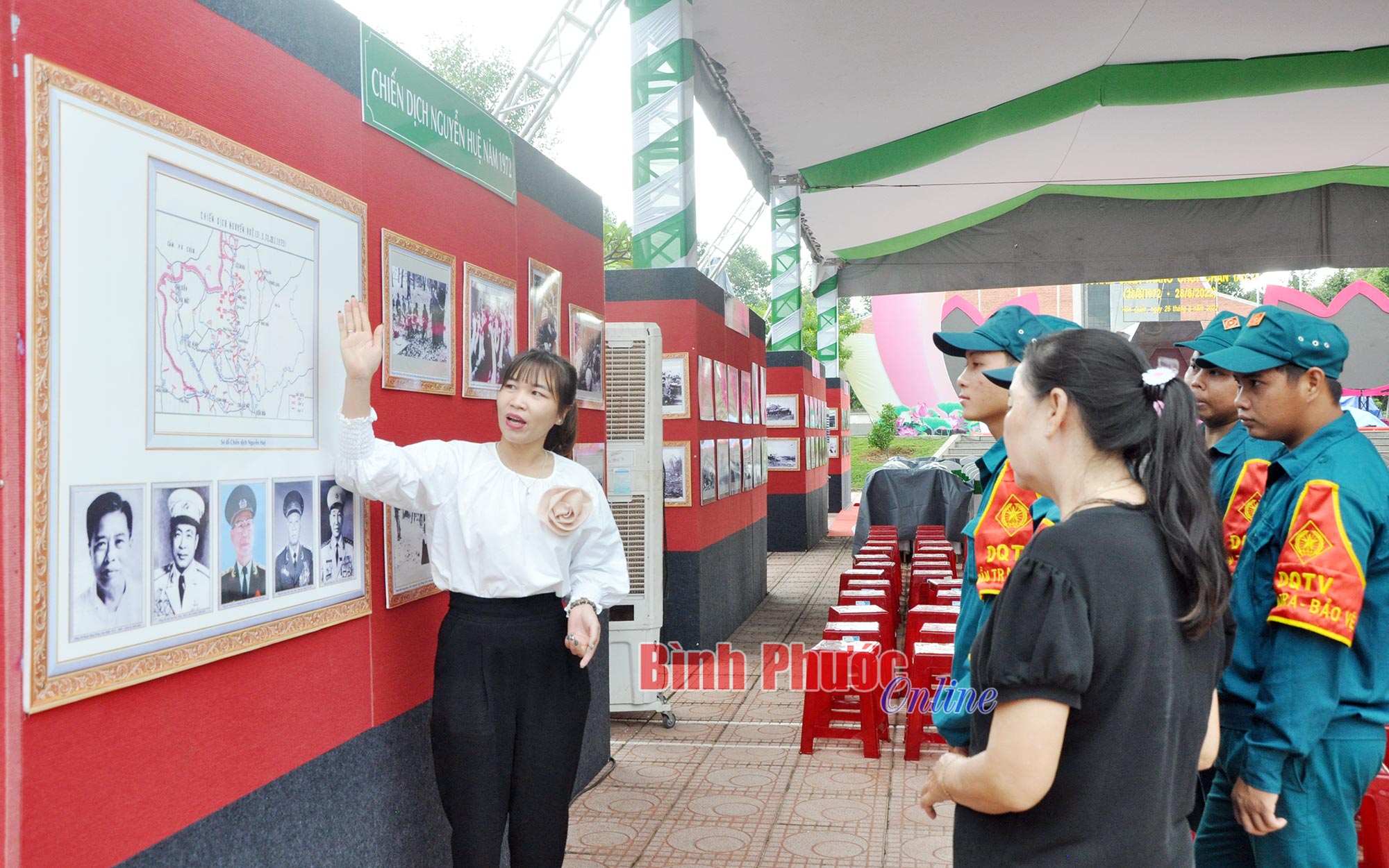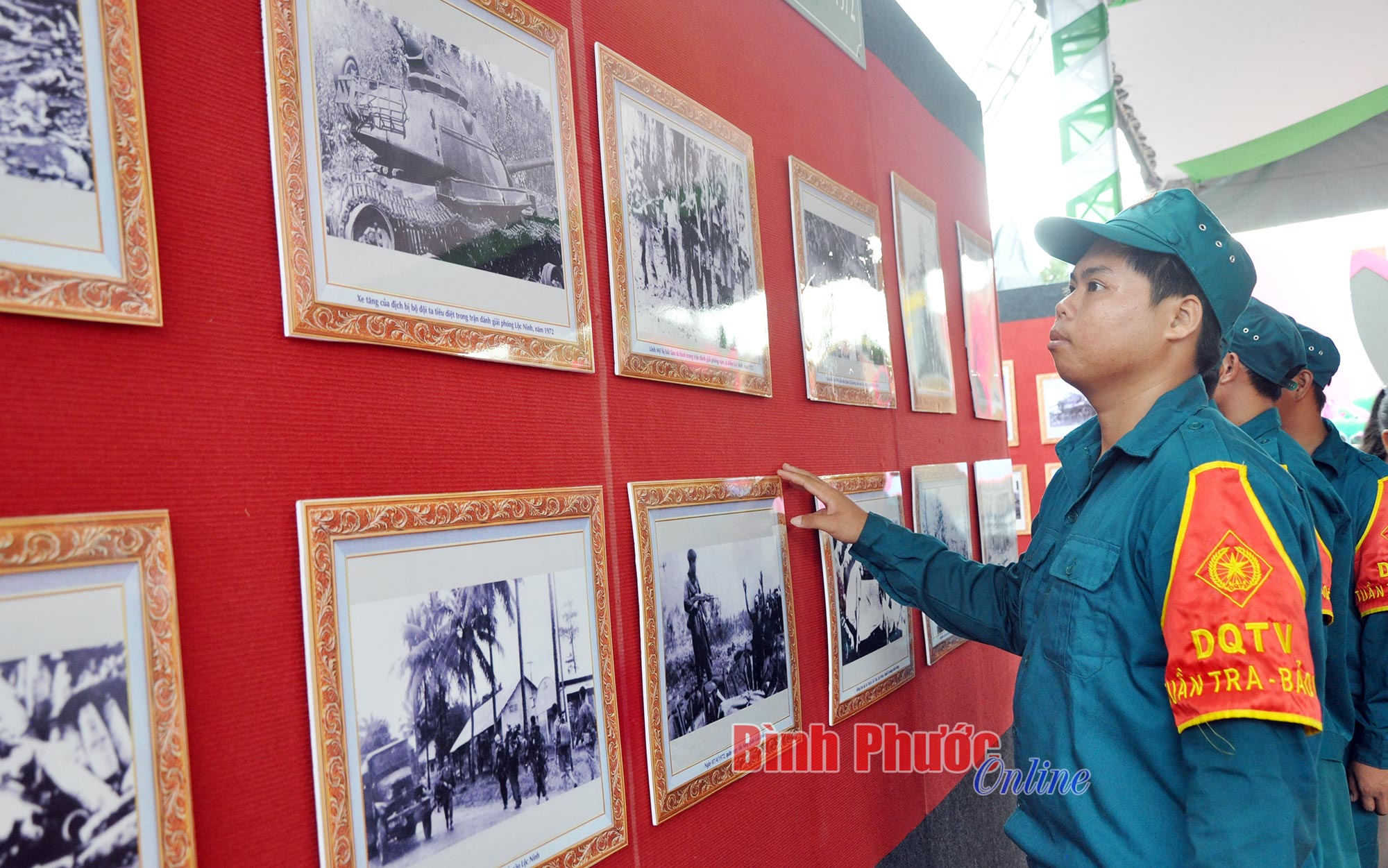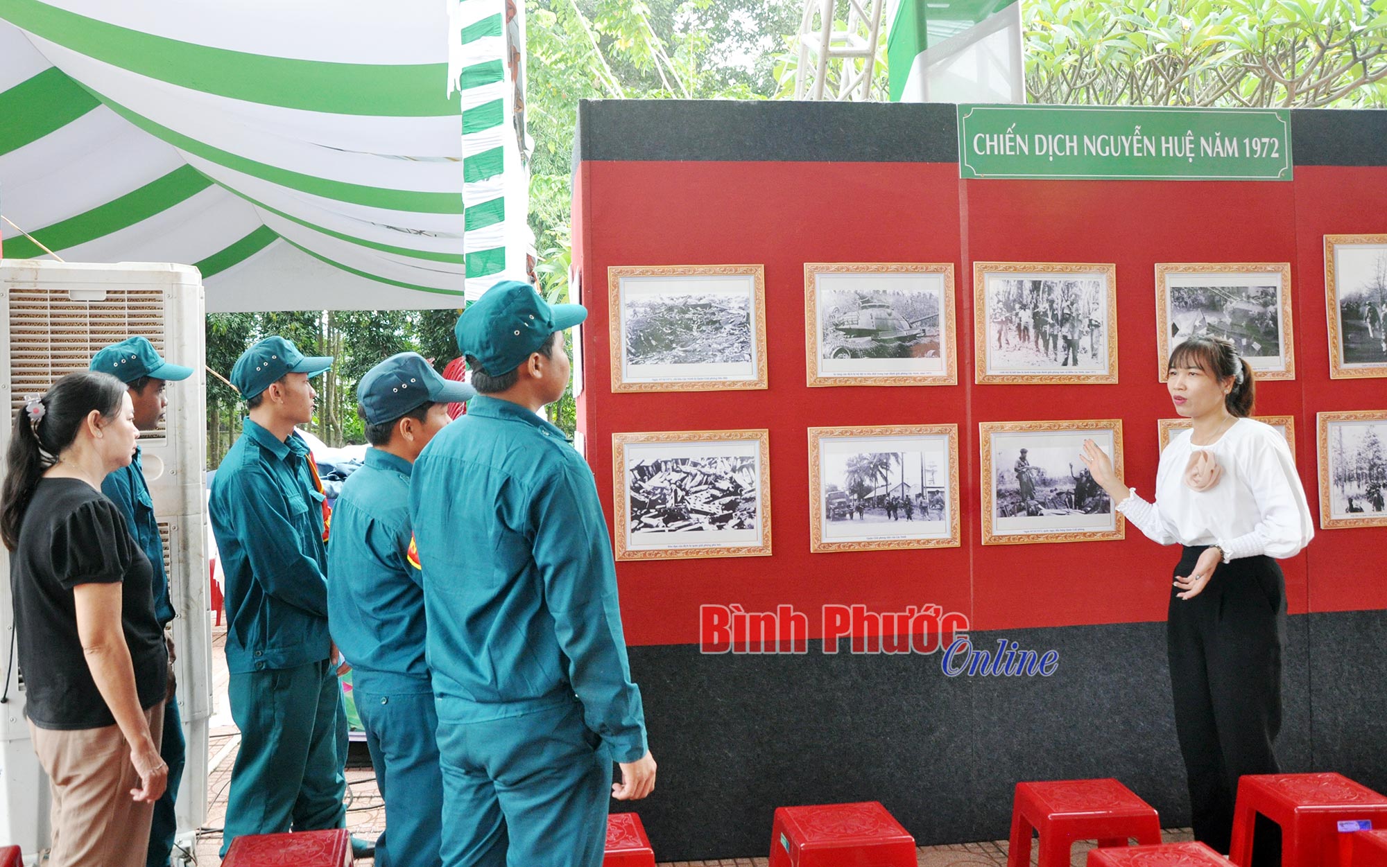 Người dân và thế hệ trẻ huyện Hớn Quản tìm hiểu về những chiến công vang dội trong chiến dịch Nguyễn Huệ năm 1972 qua các hình ảnh trưng bày tại triển lãm