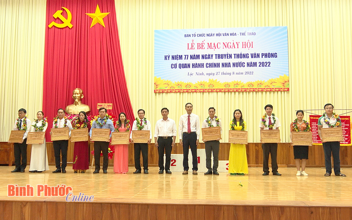 Dịp này có 13 gương điển hình tiên tiến của Văn phòng Đoàn đại biểu Quốc hội và HĐND tỉnh, Văn phòng UBND tỉnh, Văn phòng HĐND và UBND các huyện, thị xã, thành phố trong tỉnh Bình Phước năm 2022 được UBND huyện Lộc Ninh tuyên dương, khen thưởng.
