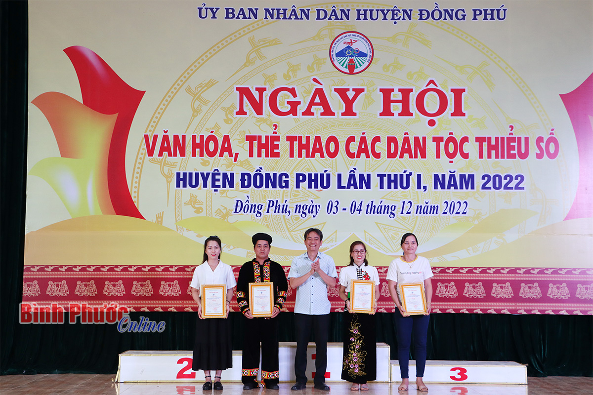 Đồng Phú khai mạc Ngày hội văn hóa, thể thao các dân tộc thiểu số lần thứ nhấtBPO - Tối nay 3-12, tại Trung tâm Văn hóa - Thể thao huyện Đồng Phú, UBND huyện tổ chức khai mạc Ngày hội văn hóa, thể thao các dân tộc thiểu số lần thứ nhất, năm 2022 với sự tham gia của 400 vận động viên, diễn viên đến từ 11 đoàn thuộc các xã, thị trấn trên địa bàn huyện.