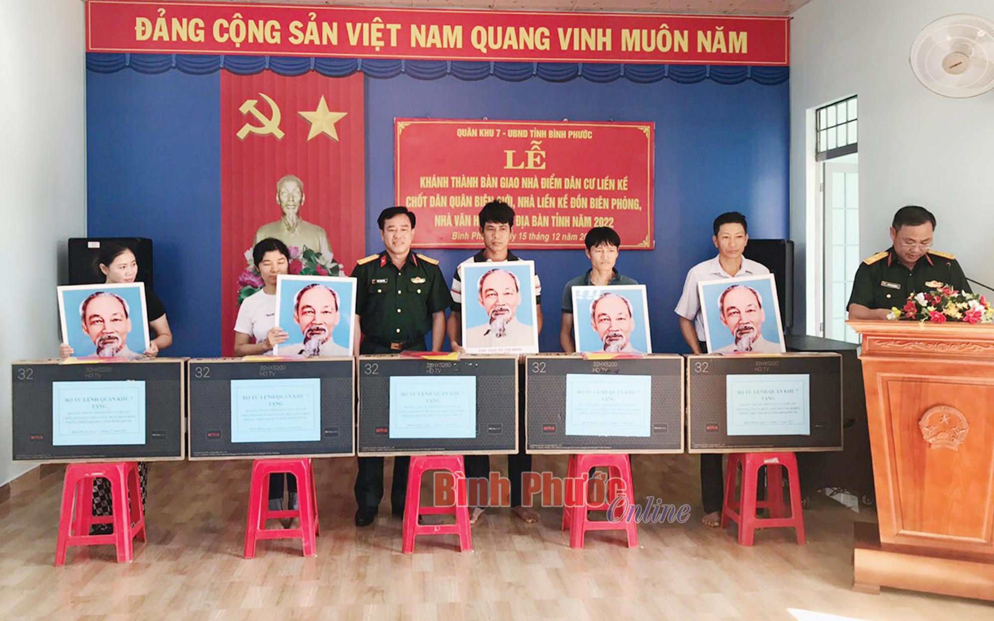 Trung tá Đàm Duy Thành, Trưởng ban Dân vận, Bộ CHQS tỉnh cho biết: Năm 2022, Bộ CHQS tỉnh đã tham mưu Tỉnh ủy, UBND tỉnh triển khai xây dựng 4 điểm dân cư liền kề các đồn biên phòng: Phước Thiện, Đắc Ơ, Bù Đốp, Tân Thành. Đồng thời mở rộng 3 điểm dân cư liền kề chốt dân quân biên giới các xã: Thanh Hòa, Hưng Phước và Lộc Hòa. Bên cạnh đó là xây dựng 1 nhà văn hóa tại điểm dân cư liền kề chốt dân quân biên giới xã Thanh Hòa (Bù Đốp), 2 hệ thống cấp điện cho chốt dân quân biên giới xã Lộc Tấn và Lộc Thành (Lộc Ninh). Tổng kinh phí xây dựng 19 tỷ 30 triệu đồng. Ngoài kinh phí từ ngân sách tỉnh, Bộ Tư lệnh Quân khu 7, Bộ CHQS tỉnh hỗ trợ, các hộ dân cũng góp tiền để xây dựng thêm một số hạng mục. “Các hộ dân về nơi ở mới bước đầu sẽ gặp khó khăn. Do đó, bên cạnh sự quan tâm, động viên của chính quyền địa phương, chúng tôi cũng tích cực vận động các tổ chức, mạnh thường quân những phần quà để kịp thời động viên người dân. Dịp tết Nguyên đán Quý Mão 2023, Bộ Tư lệnh Quân khu 7, Bộ CHQS tỉnh, ban CHQS 3 huyện biên giới đều tổ chức thăm, chúc tết, động viên hộ dân ở các điểm dân cư liền kề chốt dân quân biên giới, điểm dân cư liền kề đồn biên phòng” - Trung tá Thành nhấn mạnh.