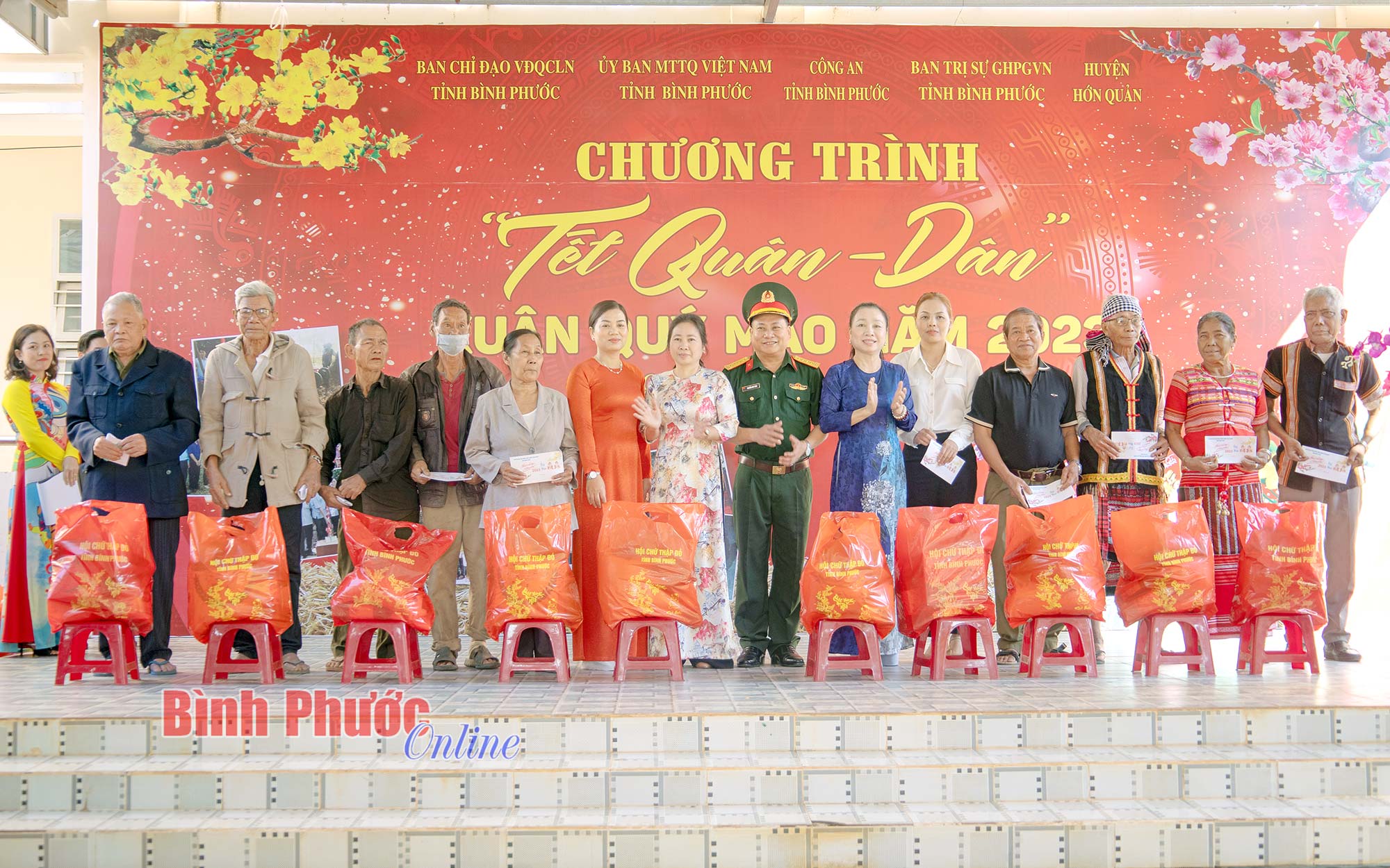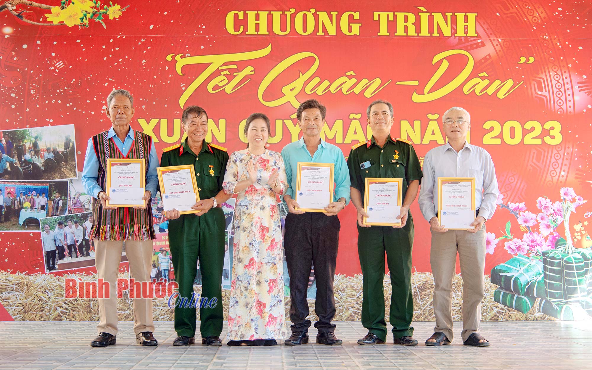 Tham dự chương trình có Ủy viên Ban Thường vụ, Trưởng ban Dân vận Tỉnh ủy, Chủ tịch UBMTTQVN tỉnh Lê Thị Xuân Trang; Phó Chủ nhiệm Chính trị Quân khu 7 Nguyễn Như Trúc; lãnh đạo Bộ Chỉ huy Quân sự tỉnh, các ban, ngành, đoàn thể tỉnh, huyện Hớn Quản và hơn 300 người dân xã An Khương.