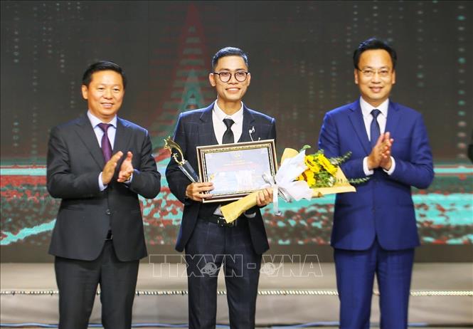 Trao giải Nhất cho thí sinh Phạm Công Thành (Đại học Văn hoá nghệ thuật Quân đội). Ảnh: Tuấn Đức/TTXVN