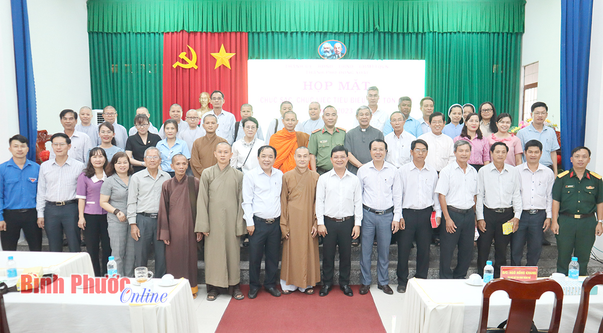 Thành phố Đồng Xoài hiện có 56 chức sắc, chức việc của 9 tôn giáo với gần 12 ngàn tín đồ tham gia sinh hoạt. Năm 2022, các cơ sở tôn giáo đã có những đóng góp tích cực trong thực hiện các phong trào xây dựng khu dân cư vùng tôn giáo; đặc biệt là phong trào dân vận khéo "việc phố việc làng, đất vàng cũng hiến", "xây dựng các tuyến đường sạch, xanh, sáng, đẹp, an toàn", "xây dựng đô thị văn minh, công dân gương mẫu tự giác"... Đồng thời, tích cực tham gia, hưởng ứng các hoạt động xã hội từ thiện, cùng với các cấp, ngành, địa phương thực hiện tốt công tác an sinh xã hội, góp phần chung tay xây dựng thành phố Đồng Xoài ngày càng phát triển giàu mạnh, văn minh.