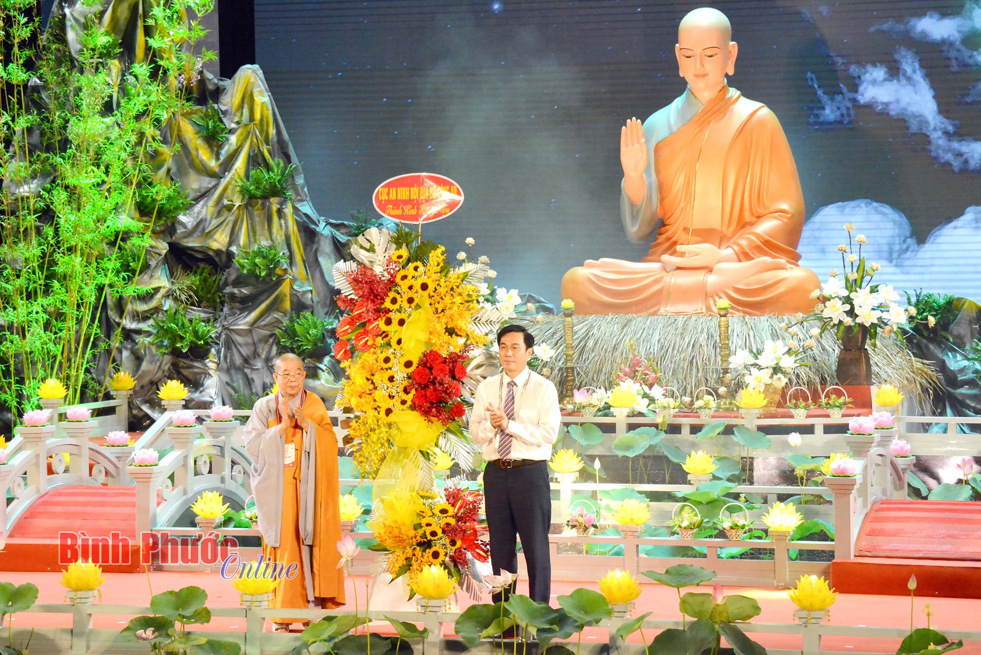 Thiếu tướng Võ Hùng Minh, Phó Cục trưởng Cục An ninh nội địa, Bộ Công an tặng lẵng hoa chúc mừng đại lễ